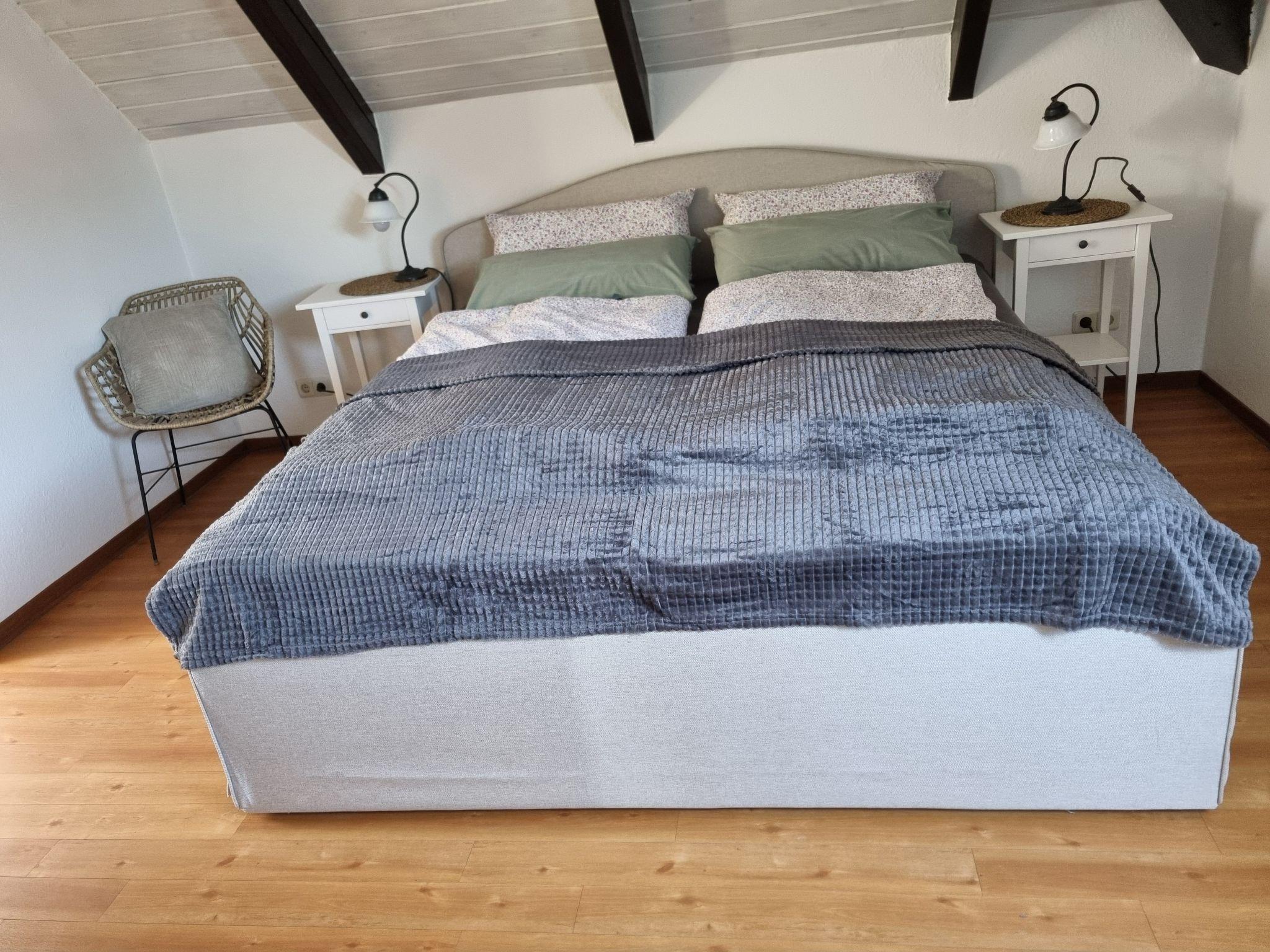 You live in a completely renovated 2-room holiday flat with separate entrance on the 1st floor. The flat is divided into a kitchen-living room with a fully equipped fitted kitchen (Bauck oven/microwave, 2-plate hob, fridge with freezer compartment, coffee machine, toaster, kettle and egg boiler). In the bedroom you sleep in a double bed 180x200cm with enough storage space. From the bedroom you have access to the daylight bathroom with shower/WC.