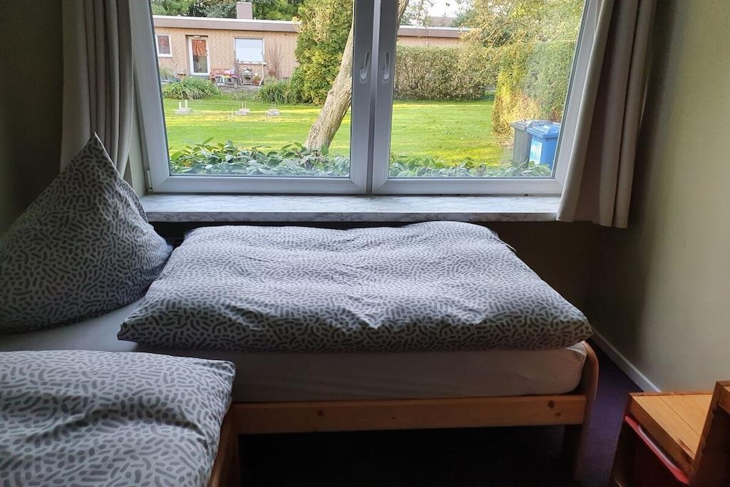 Lovingly and modernly furnished holiday apartment on the East Frisian North Sea coast. You will stay in a 60m² apartment with 1 bedroom, 1 children's room, 1 bathroom with tumble dryer and a cozy eat-in kitchen with direct access to the terrace and play area, for relaxation in nature thanks to its location on the edge of a field.
