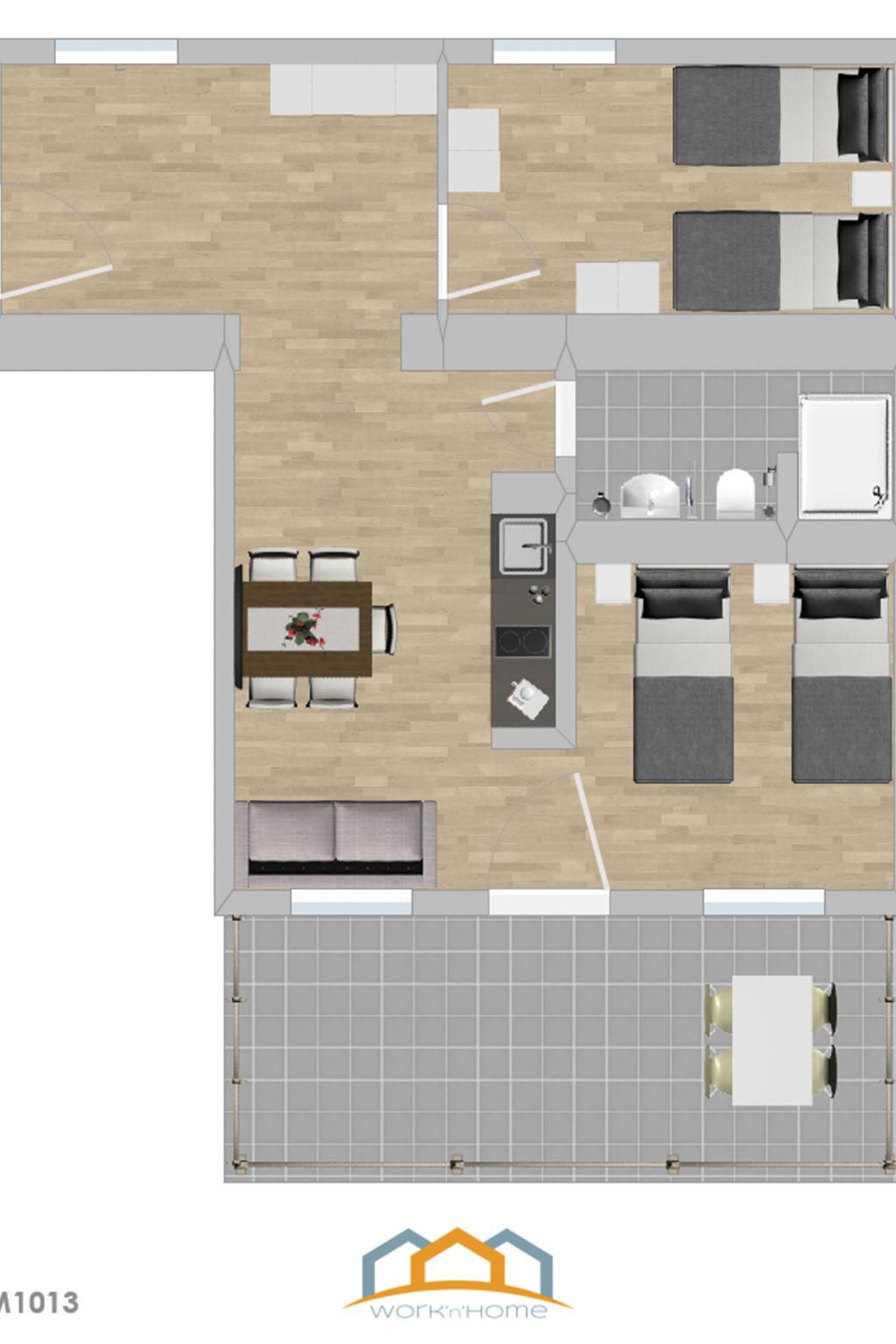 You can see the exact room and bed layout on the floor plan of the accommodation.