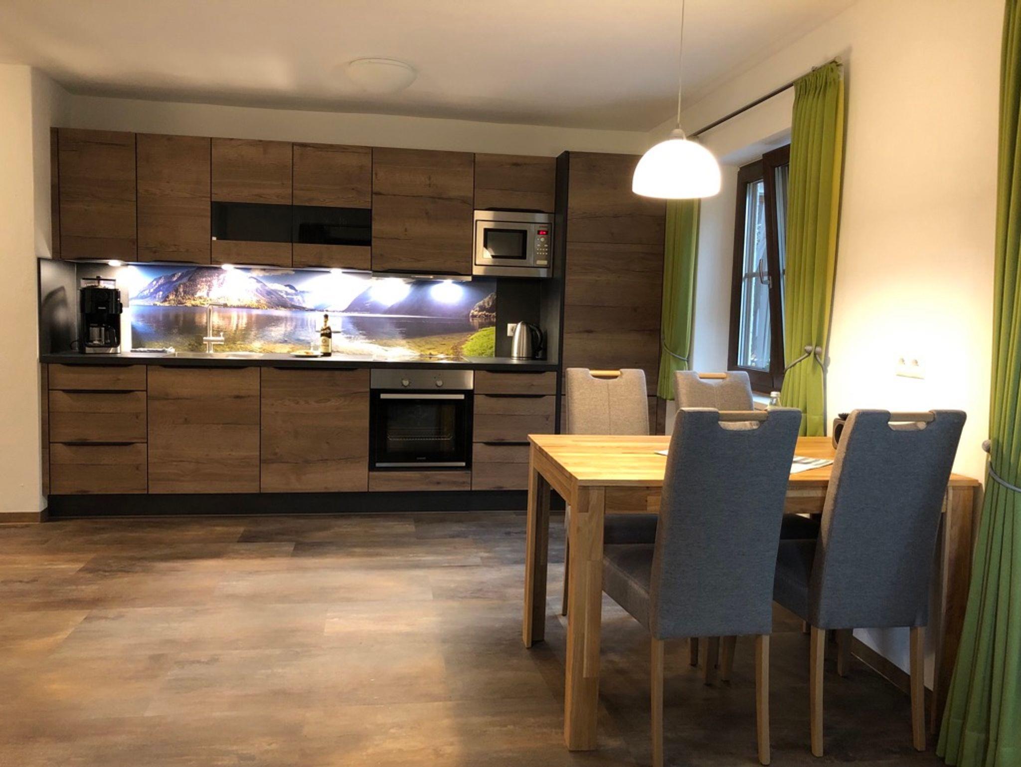 Die in 2021 neu renovierte Ferienwohnung mit Bergblick liegt in der ersten Etage, verfügt über einen eigenen Balkon und einen separaten Eingang. Ihr Feriendomizil erstreckt sich über 60 m², ist sehr komfortabel ausgestattet und bietet Platz für bis zu 4 Personen (1 separates Schlafzimmer mit Doppelbett; in der Wohnküche kann das Schlafsofa als Bett mit einer Liegefläche von 170 cm X 200 cm mit wenigen Handgriffen umfunktioniert werden).