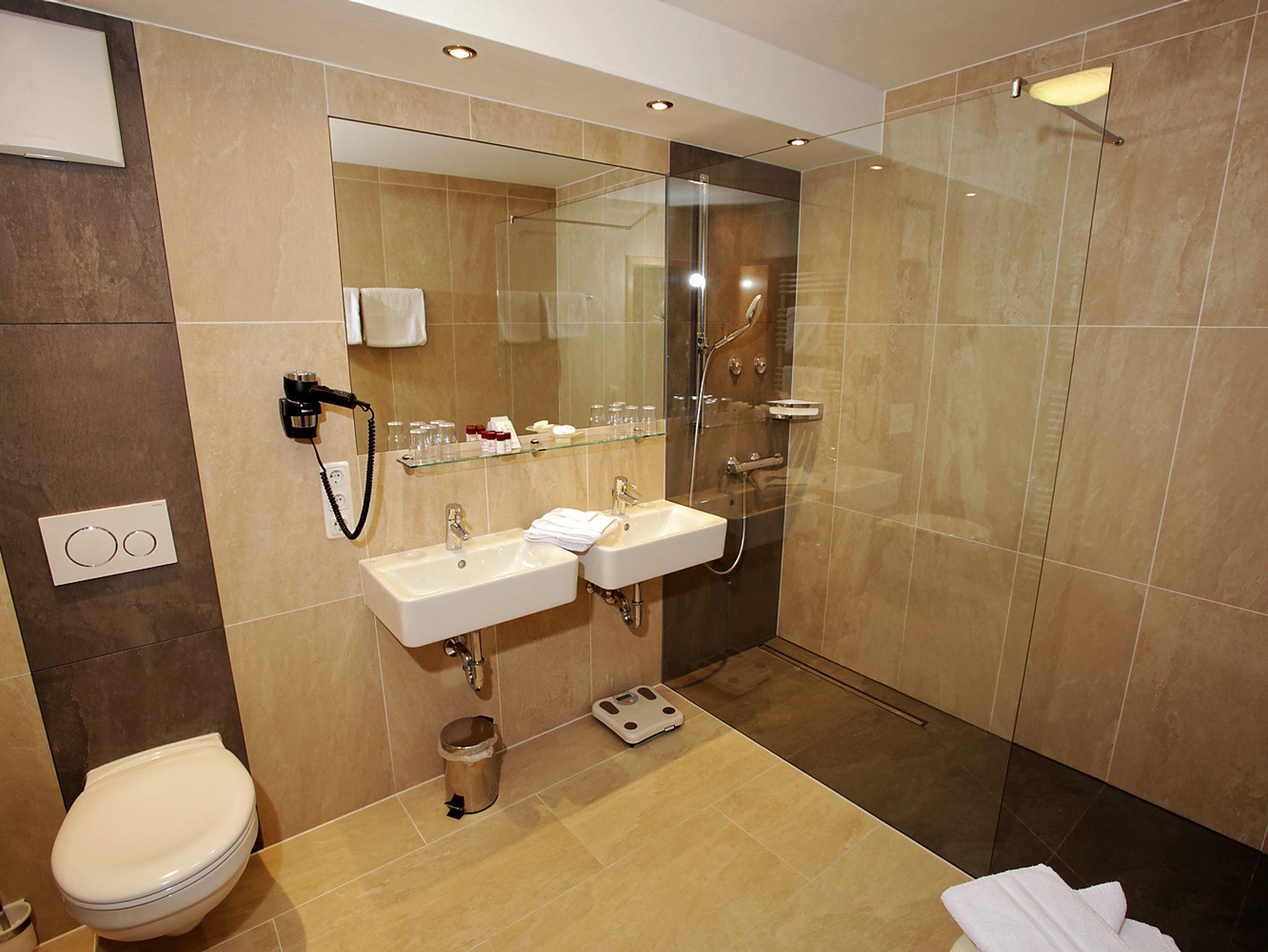 Ein geräumiges Bad mit einer geräumigen Dusche mit WC und zusätzlich, einem separaten WC.