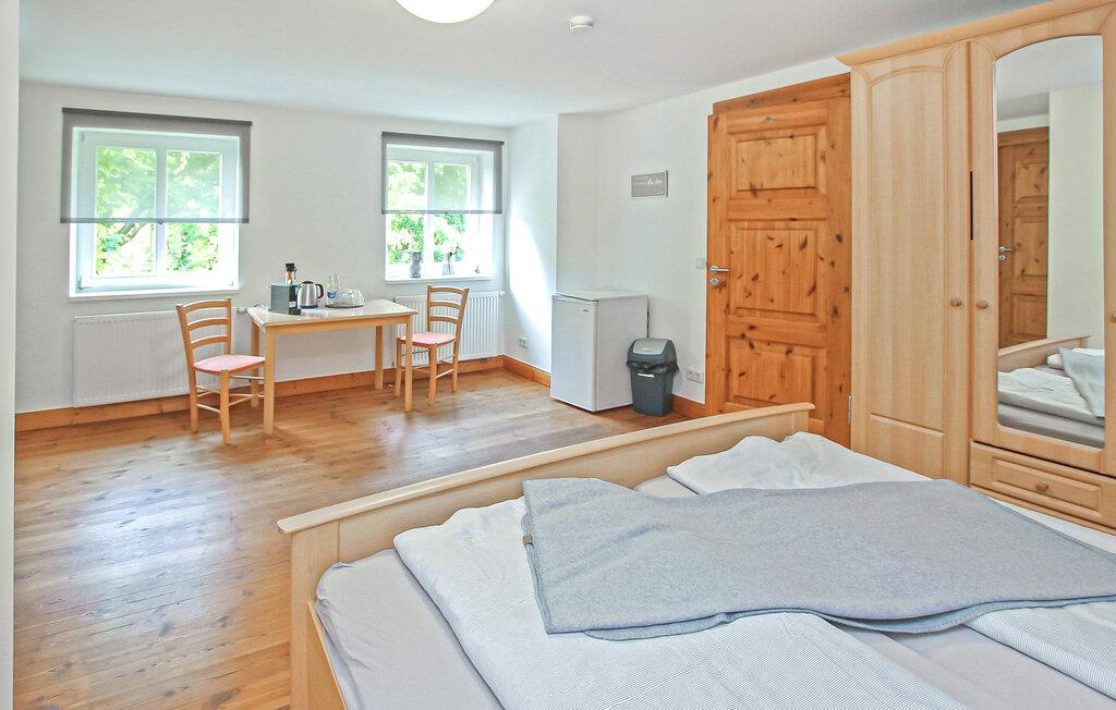Det sentraloppvarmede, røykfrie dobbeltrommet ble renovert i 2022, og er tilgjengelig via en egen inngang (trapp). Det er mulighet for en ekstra seng for 1 baby. Barneseng på forespørsel. Det er et lite spisebord med stoler, kjøleskap, vannkoker, kapselkaffemaskin, flatskjerm-TV og bad med dusj/WC. Det er rikelig med parkeringsplasser, sykkeloppbevaring, en lekeplass med informasjonstavle om nasjonalparken, barneseng på forespørsel og gratis WiFi.