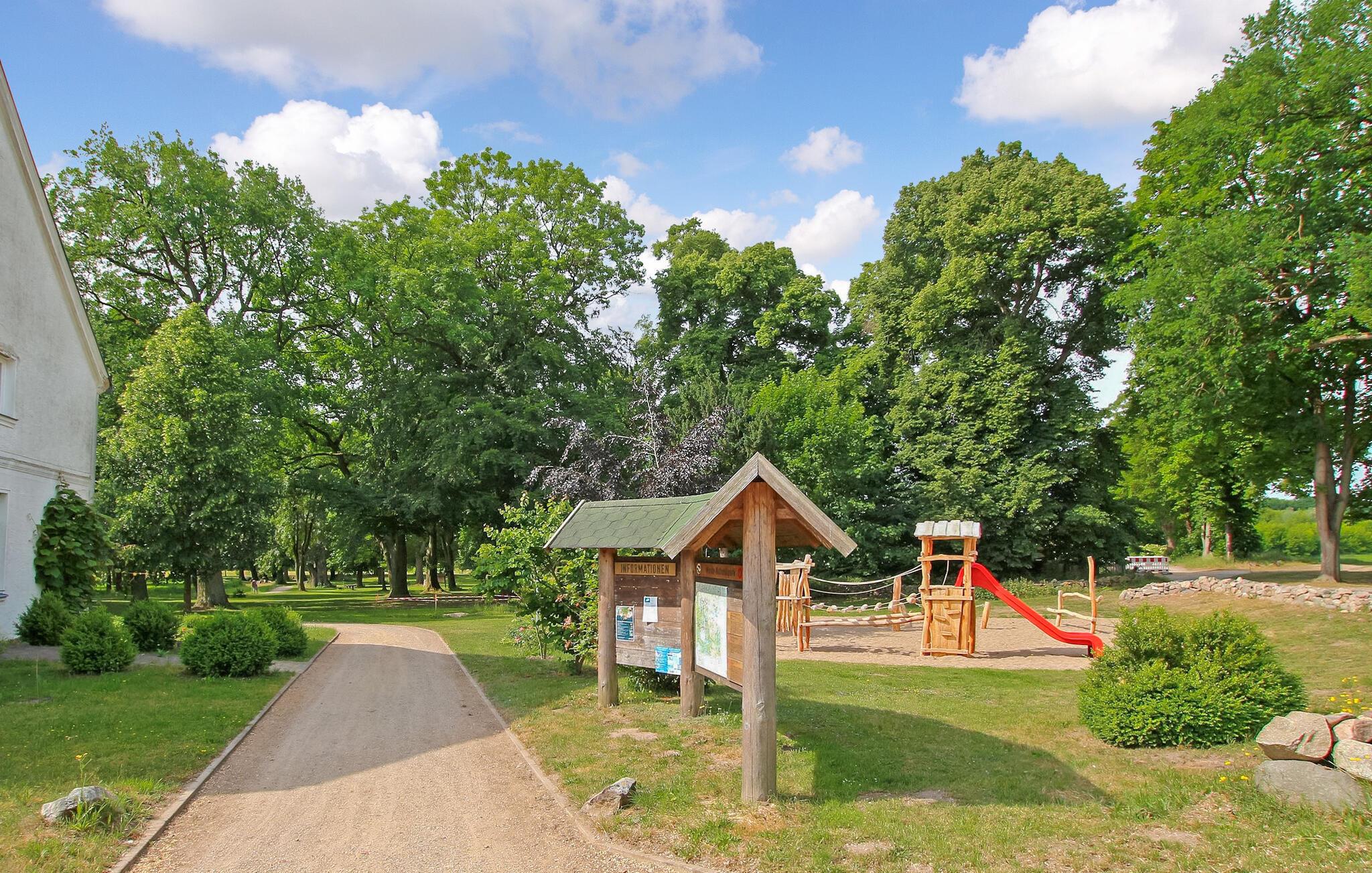 Hotellet ligger idyllisk til ved siden av den nærliggende godsparken i Friedrichsfelde, bare 10 minutters gange fra Müritz nasjonalpark, og har 4 gjesterom for totalt 7 voksne og 1-2 babyer i øverste etasje i den gamle herregården og en restaurant i første etasje som serverer frokost (mot betaling) samt en restaurant som serverer regional husmannskost og hjemmebakte kaker fra onsdag til søndag (kl. 11.00-20.00).Schliemann-museet med den berømte trojanske hesten ligger bare ca. 600 meter unna, en restaurant ca. 1 km og et vakkert badeområde ved Mühlensee ca. 5 km unna. Shoppingmuligheter finner du i Möllenhagen (6 km) eller i Penzlin (10 km). Den populære langdistansesykkelruten Berlin-København går rett gjennom landsbyen.