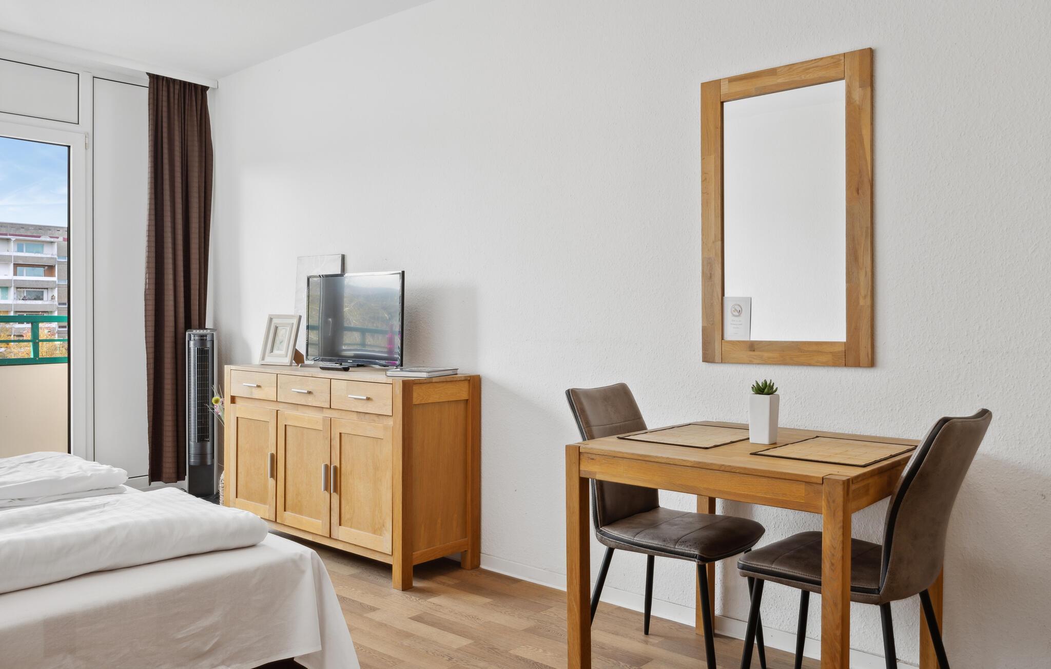 Med sin enkle, men funksjonelle innredning og lyse rom inviterer leiligheten deg til å slappe av i hyggelige omgivelser. Beliggenheten er ideell for mange aktiviteter. Styrk deg med en deilig frokost før du begir deg ut på oppdagelsesferd i nærområdet. Nyt noen solstråler på balkongen eller avrund en herlig feriedag utendørs.