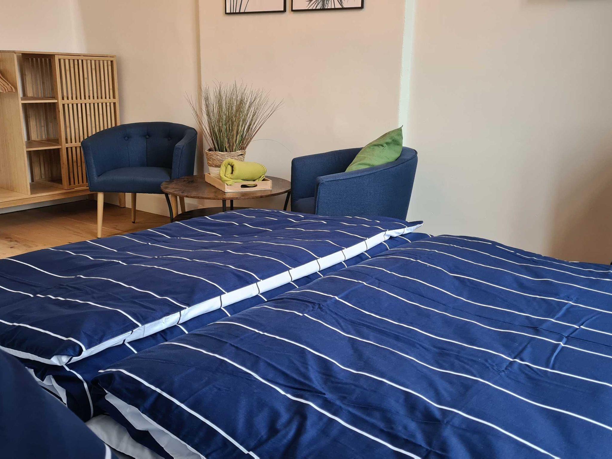 Erstausstattung Bettwäsche und Handtücher im Preis enthalten.