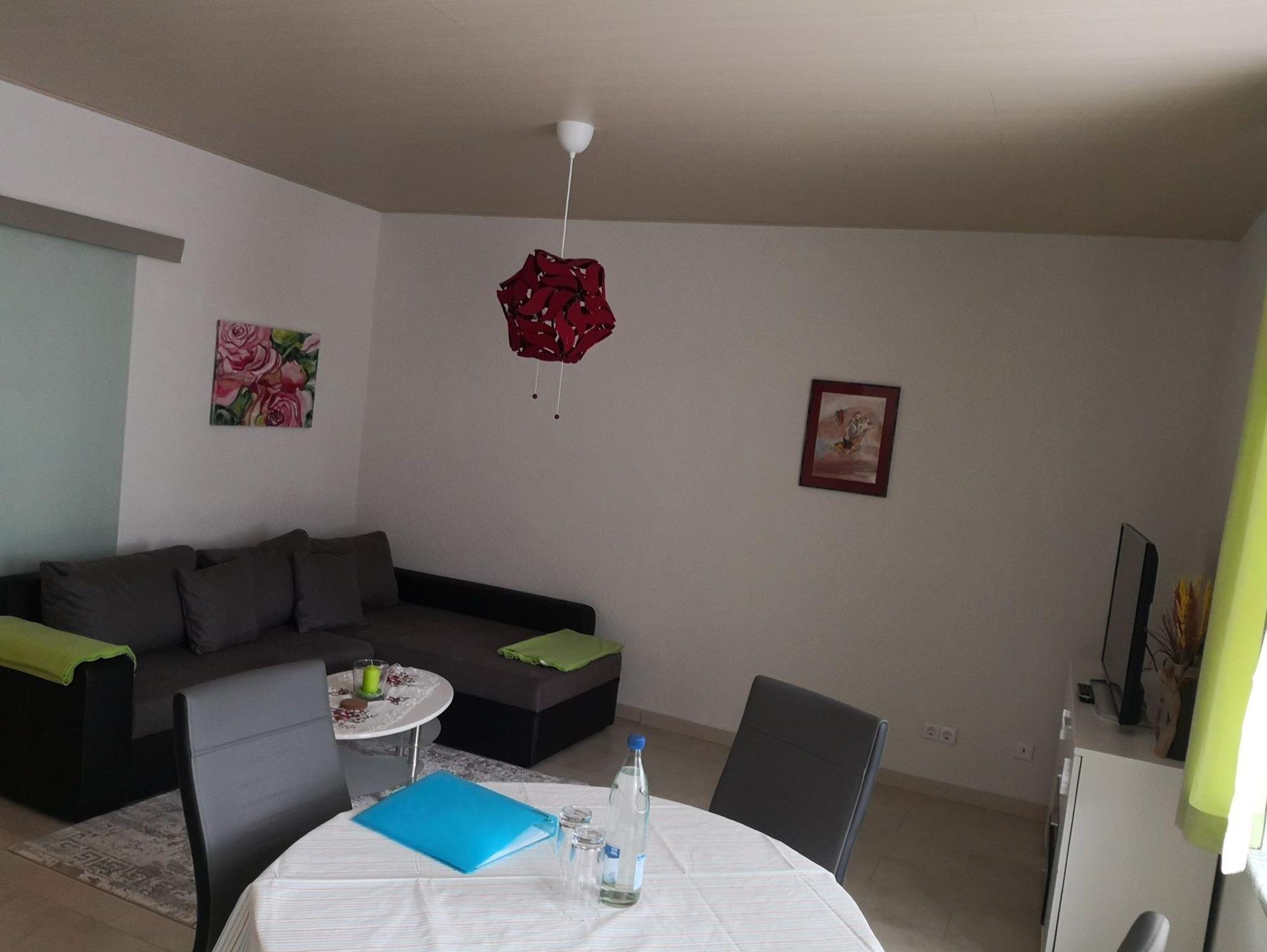 Bei uns wohnen Sie in einer schönen hellen Ferienwohnung (42 m2) mit einem Schlafzimmer (Bett 140 * 200), einem modernen Bad sowie einem geräumigen Wohn- Essbereich. Eine Aufbettung bis max. 4 Personen ist mit der gemütlichen Schlafcouch möglich. Unsere Wohnung ist eine Nichtraucherwohnung (Raucher können auf dem Hof rauchen).