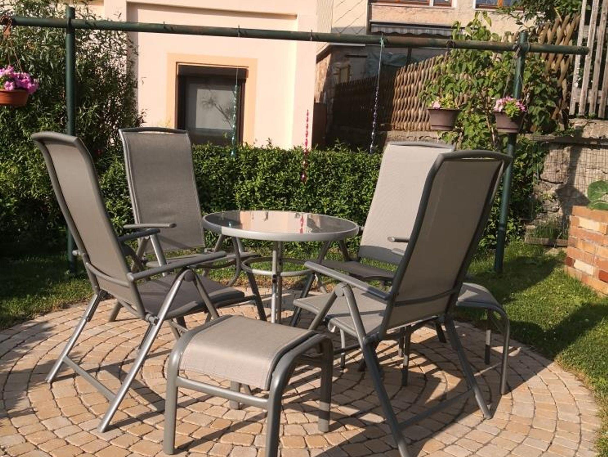 Bei entsprechendem Wetter kann gern unser kleiner Garten als Sitzgelegenheit genutzt werden. Einen Grill (Lotusgrill) mit Zubehör kann bei uns für kleines Geld geliehen werden.