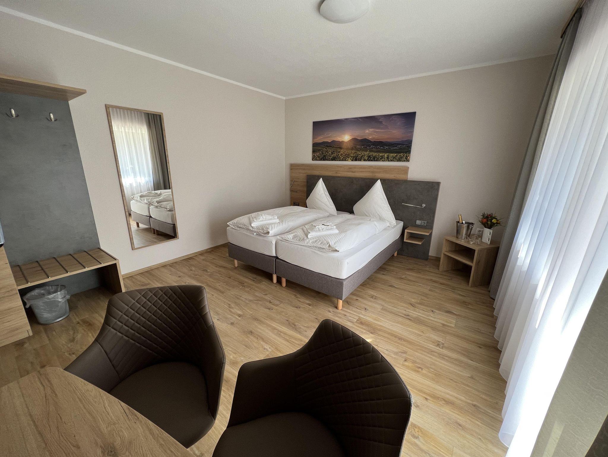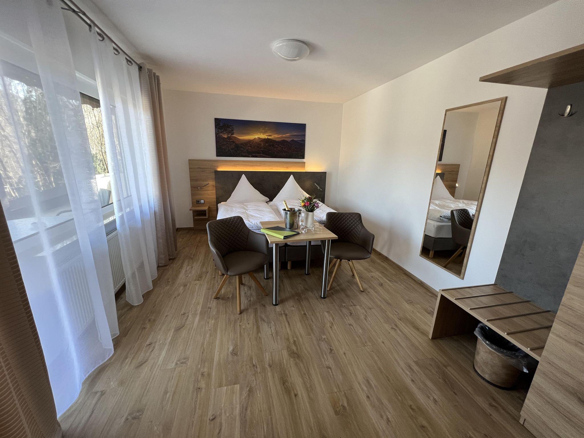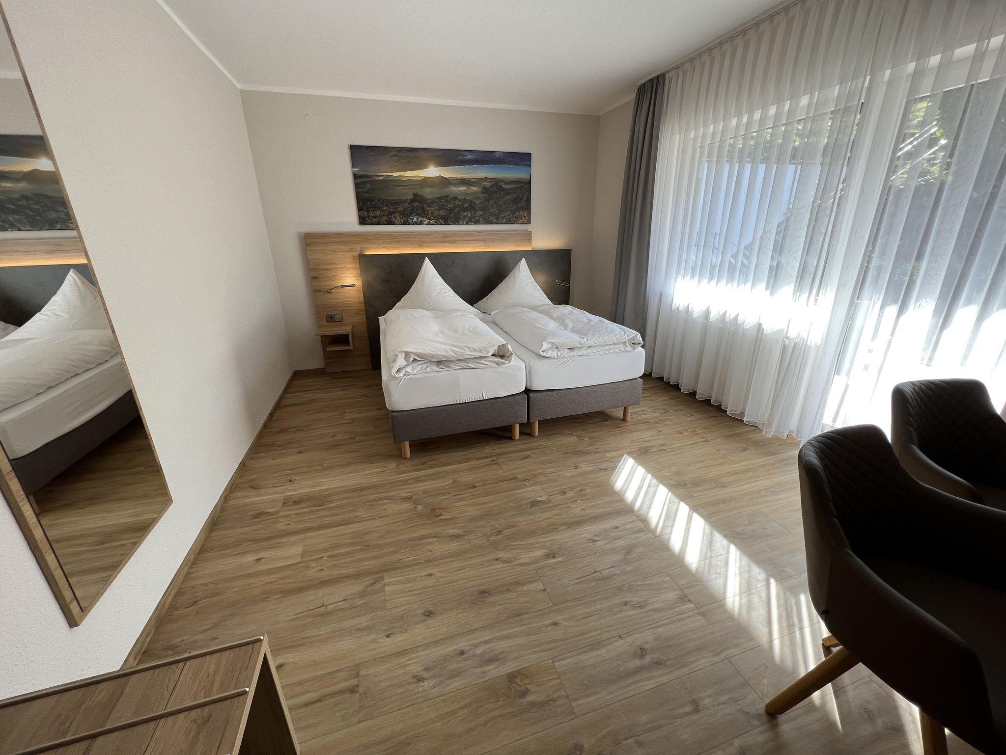 Schöne, ruhig gelegene Pension am Ortsende von Annweiler. Gutes Frühstück und großes Zimmer mit Balkon war für uns passend.