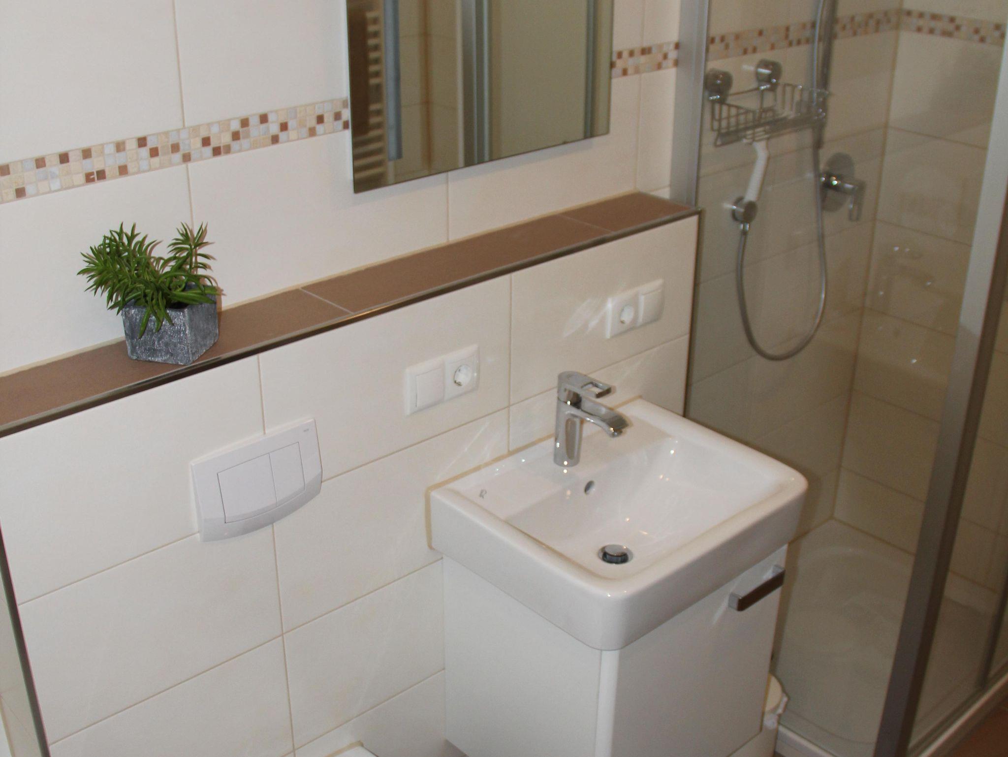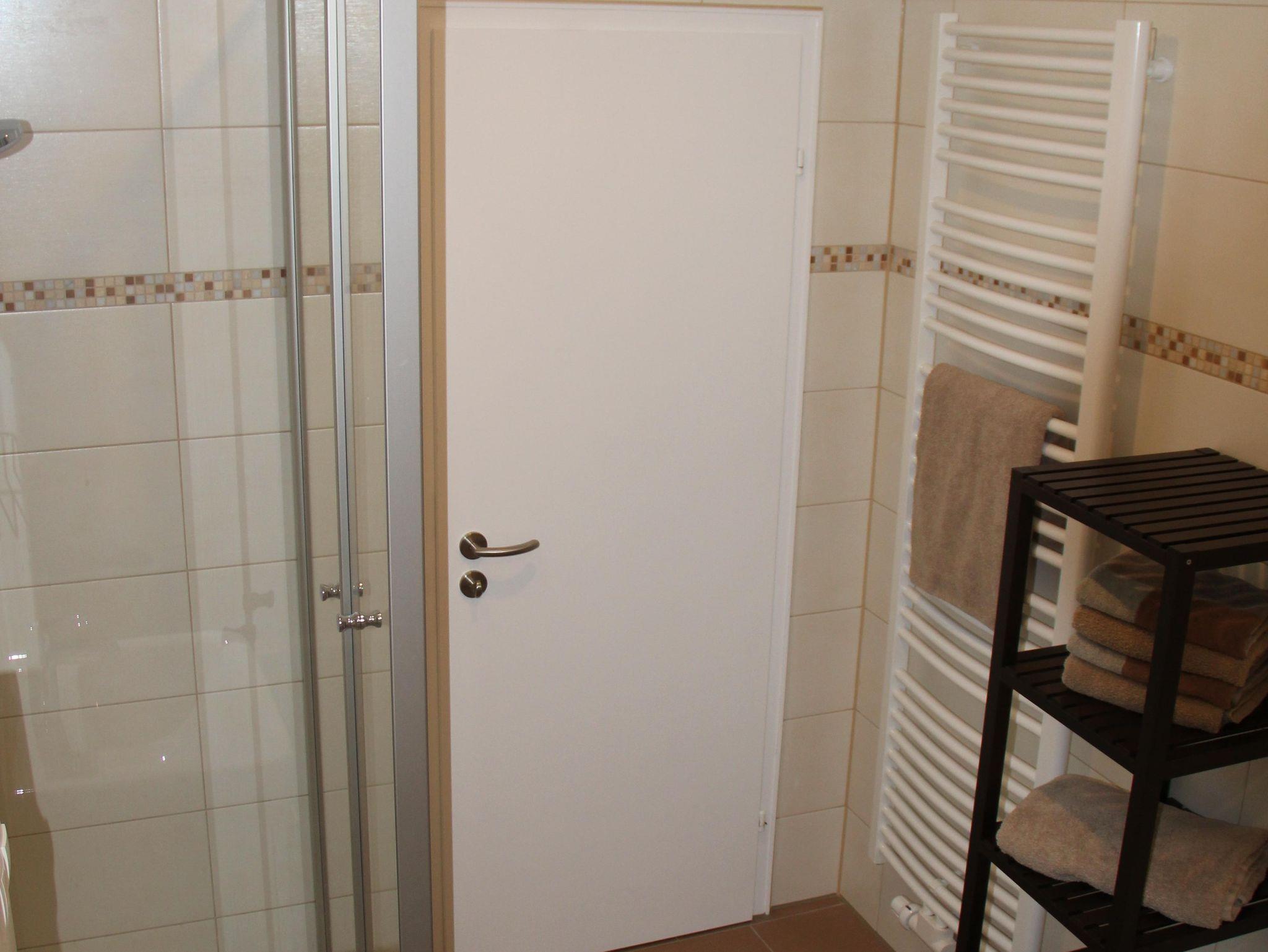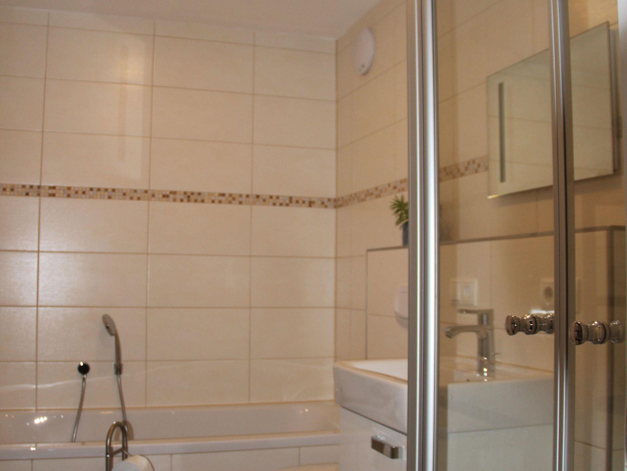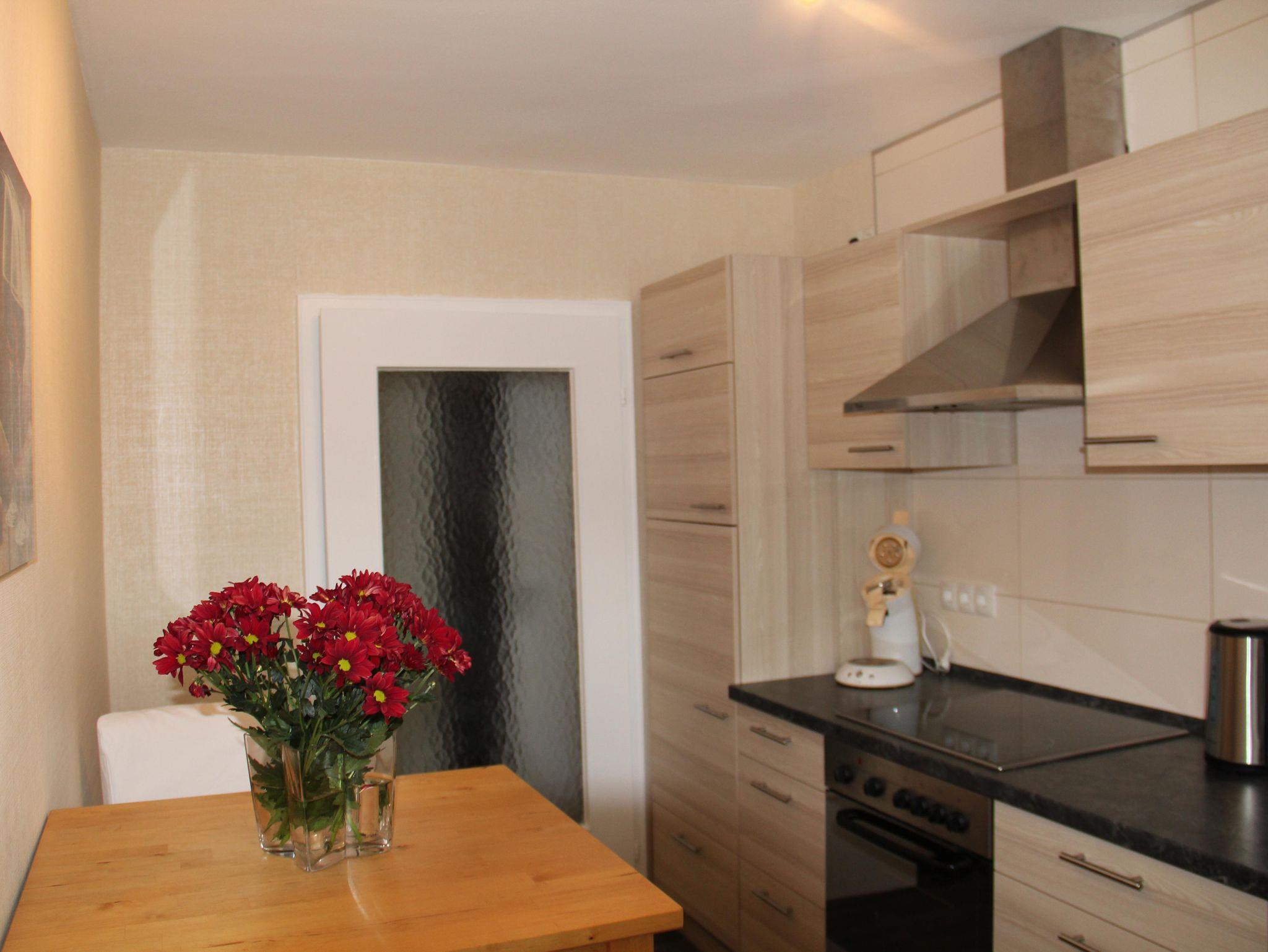 Unsere komfortable Ferienwohnung verfügt über eine komplett eingerichtete Küche, ein großes Schlafzimmer, ein modernes Badezimmer mit Badewanne, separater Dusche und Fußbodenheizung. Im Wohn-/Esszimmer befinden sich ein Full-HD-Fernseher inkl. Sat-Anschluss, eine Kompaktanlage (Radio, CD) sowie ein Telefon. Seit 2018 eine neue Schlafcouch im Wohnzimmer mit einer Liegefläche von 1,40 x 2,10 m.In der gesamten Wohnung haben Sie kostenfreien Zugang zum W-LAN. Auf Anfrage stellen wir gerne kostenlos Babybett und Hochstuhl bereit. Kinder bis 12 Jahre übernachten kostenfrei.