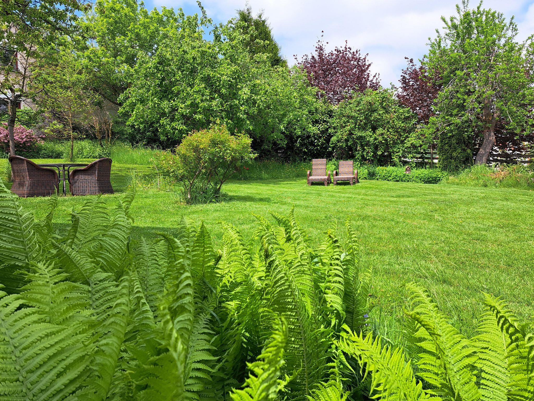 Ein weitläufiger Garten mit Kräutern für die frische Küche sowie vielen verschiedenen Obstbäumen, Sonnenliegen und einer neu angelegten Gartensauna lädt zum Entspannen, Lesen und Barbecue ein.