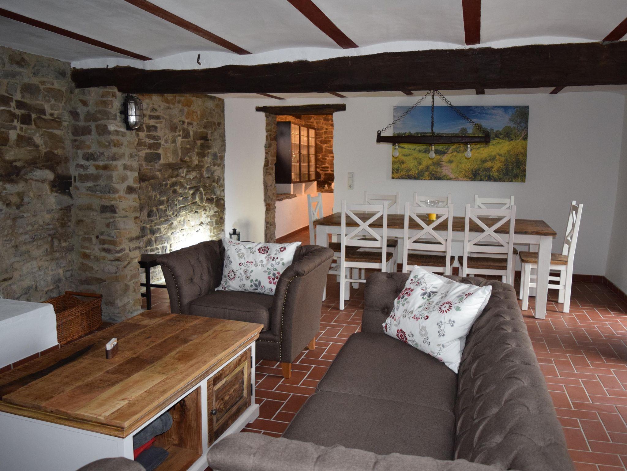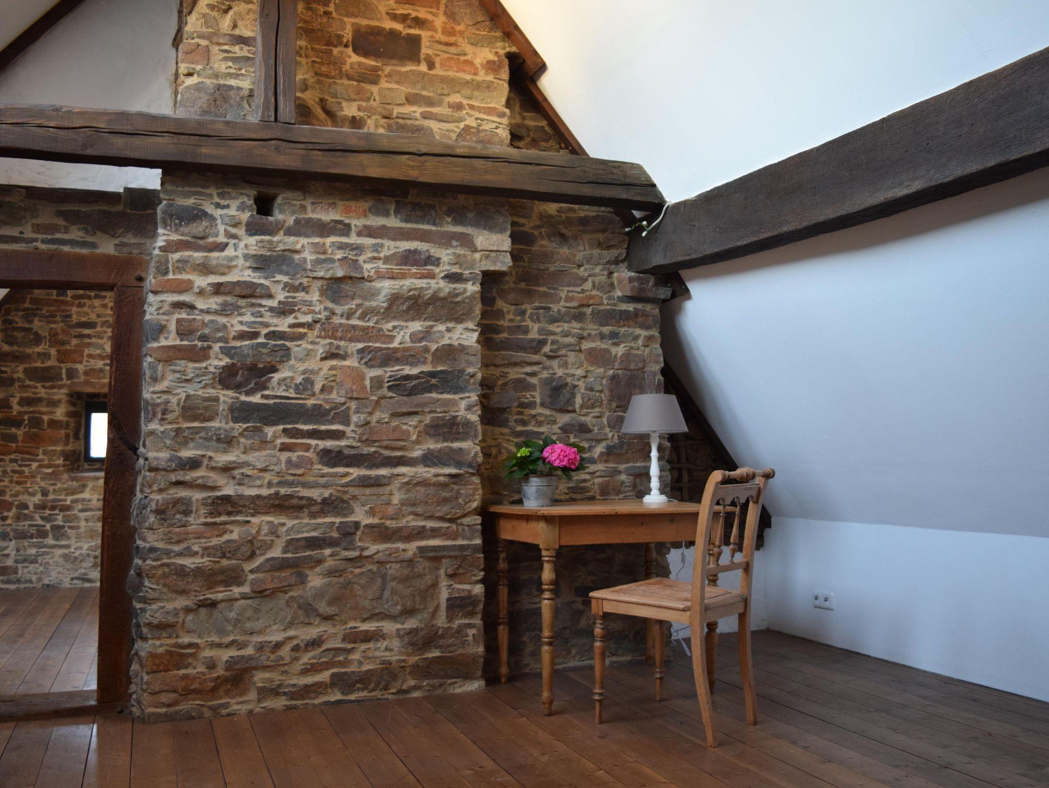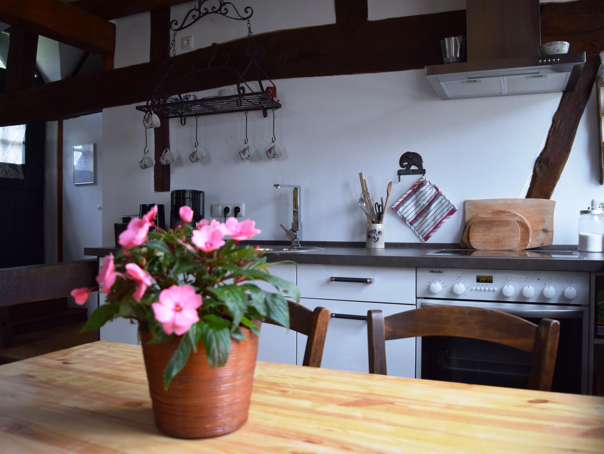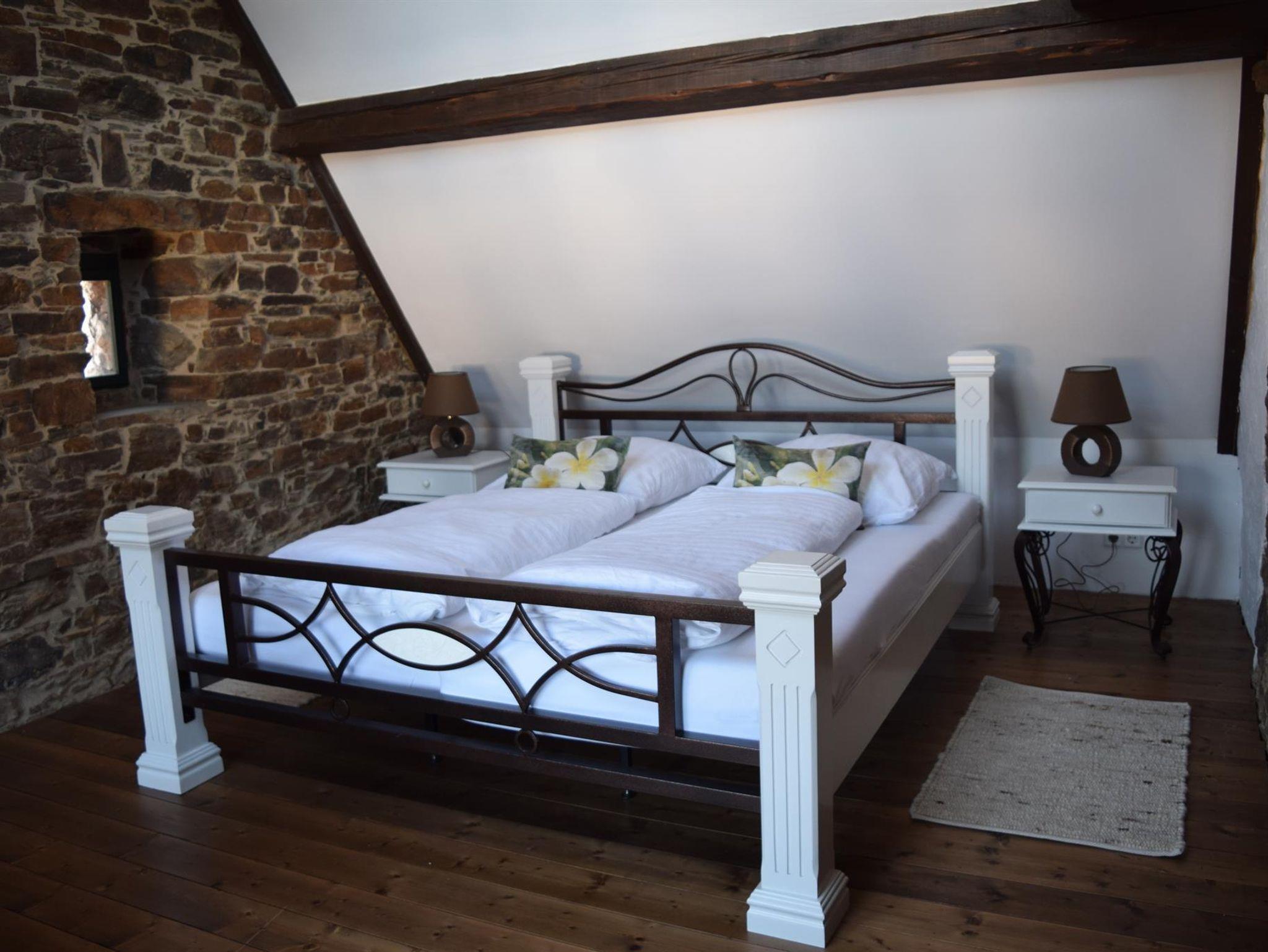 Auf dem Dachboden der ehemaligen Fachwerkscheune befinden sich heute zwei gemütliche Ferienwohnungen für 2 bis 3 Personen, während im angrenzenden Ferienhaus aus Naturstein auch größere Gruppen bis 9 Personen jede Menge Platz finden, um eine schöne gemeinsame Zeit zu erleben.