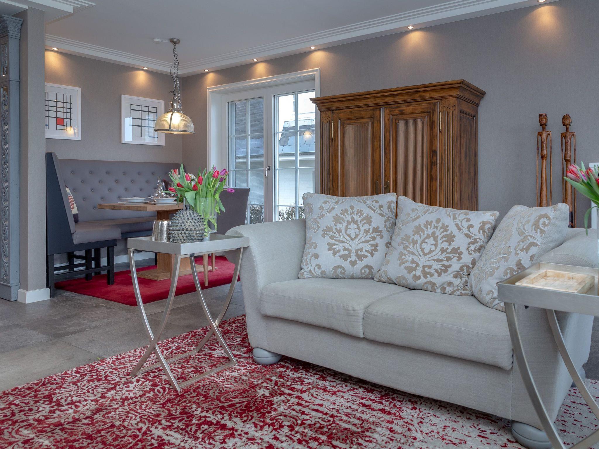 Here you can enjoy Sylt completely undisturbed an intensely. This apartment is very close to the tidal flats. You can look out over the heath and the tidal flats far into Keitum bay and to the horizon, on clear days even as far as Morsum Kliff or the mainland. The idyllic Munkmarsch with its sailing harbour, centrally located on the island, is still an insider’s tip. It is only a stone’s throw to Kampen, a short drive to the town Westerland and it is therefore a popular address for guests who would occasionally like to immerse themselves in island life, whilst still having peace and quiet. If you would like to enjoy the natural beauty of the island, then you should stay in Munkmarsch, close to the tidal flats. Here there is the fragrant heathland, perhaps a rabbit will pop by, and maybe you will see horses galloping across the tidal flats, on the way from Keitum to Kampen. Don’t expect any more traffic than this. Instead enjoy one of the most beautiful views on the island.