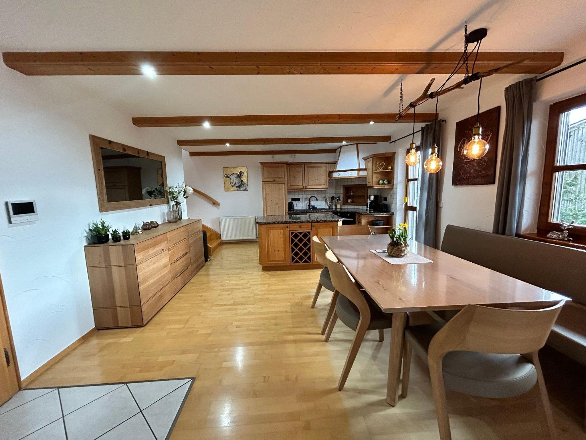 Im 1. Obergeschoss ist das Gäste-WC, Wohnzimmer, Küche mit Essbereich.