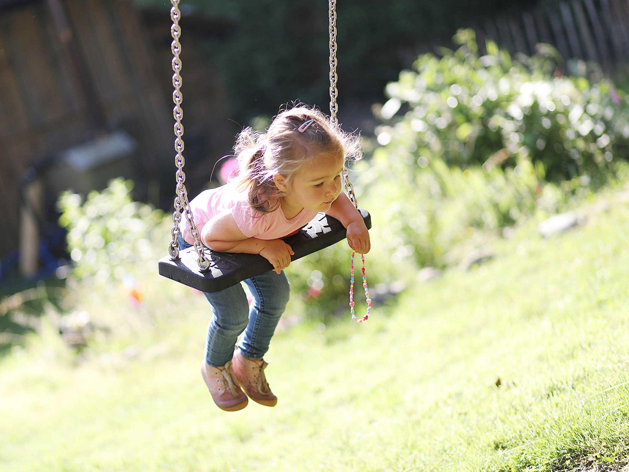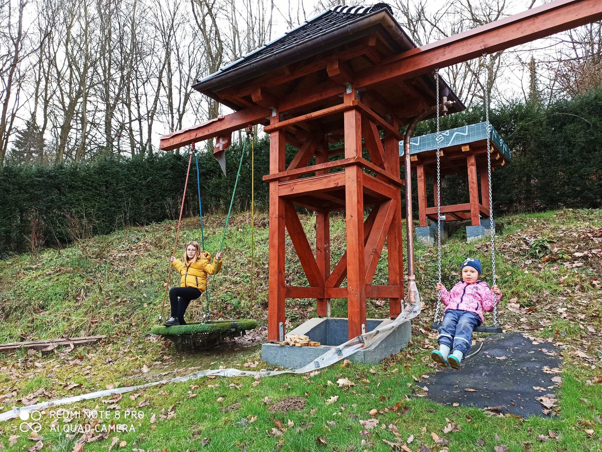 Das Familienzimmer verfügt über zwei Etagen. In der oberen Etage befindet sich das Elternschlafzimmer mit einer Sitzecke und einer Außentür um in den Garten zu gelangen.