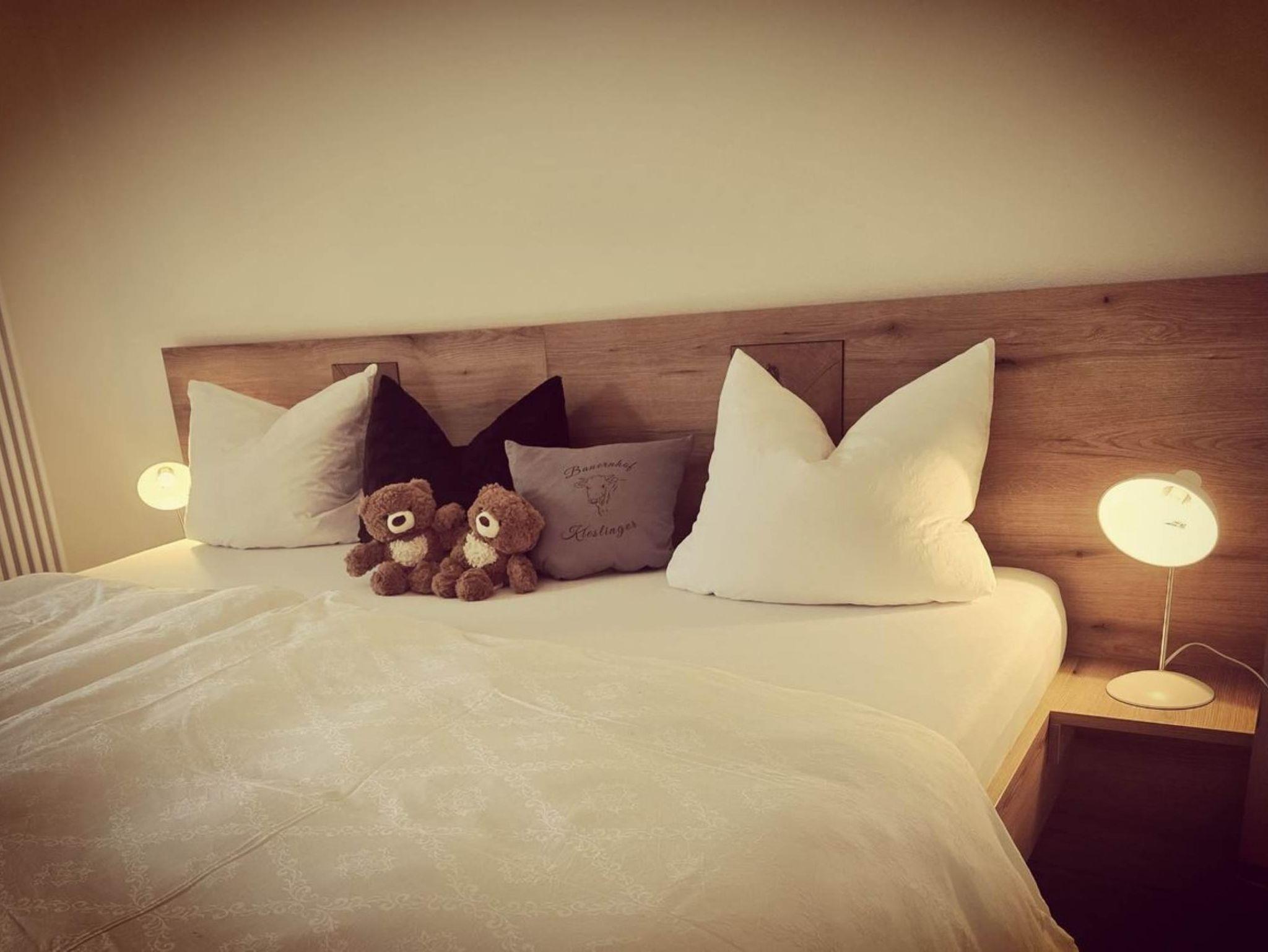 Die großzügige Ferienwohnung mit 80 Quadratmetern bietet viel Platz zum Wohlfühlen und Entspannen. Herzstück der Wohnung ist die vollausgestattete Küche, die keine Wünsche offenlässt: Neben einer Spülmaschine, einem Herd mit Backofen, Kühlschrank und Gefrierfach stehen Ihnen auch eine Mikrowelle, Kaffeemaschine, Wasserkocher, Eierkocher, Toaster sowie ein Pürierstab zur Verfügung – ideal für gemütliche Kochabende mit Familie oder Freunden. Das einladende Wohn- und Esszimmer überzeugt mit einem großen Tisch, einer Bank und drehbaren Stühlen sowie einer komfortablen Couchecke, die zum Verweilen einlädt. Ein Flachbild-TV mit Internetzugang und kostenloses WLAN sorgen für beste Unterhaltung und eine bequeme Verbindung zur Außenwelt. Insgesamt verfügt die Ferienwohnung über drei Schlafzimmer. Ein Schlafzimmer ist mit einem großzügigen Familienbett (240 x 200 cm) ausgestattet, ein weiteres mit einem komfortablen Boxspringbett in gleicher Größe (240 x 200 cm). Das dritte Schlafzimmer bietet ein gemütliches Queen-Size-Bett (140 x 200 cm) sowie eine praktische 2-Sitzer-Couch. Ein separates Gäste-WC sowie ein modernes Badezimmer mit DU/WC, bodenebener Regendusche und dekorativen Naturstein-Wänden sorgen für zusätzlichen Komfort. Fön und Kosmetikspiegel stehen ebenso bereit wie eine Waschmaschine – ideal auch für längere Aufenthalte.