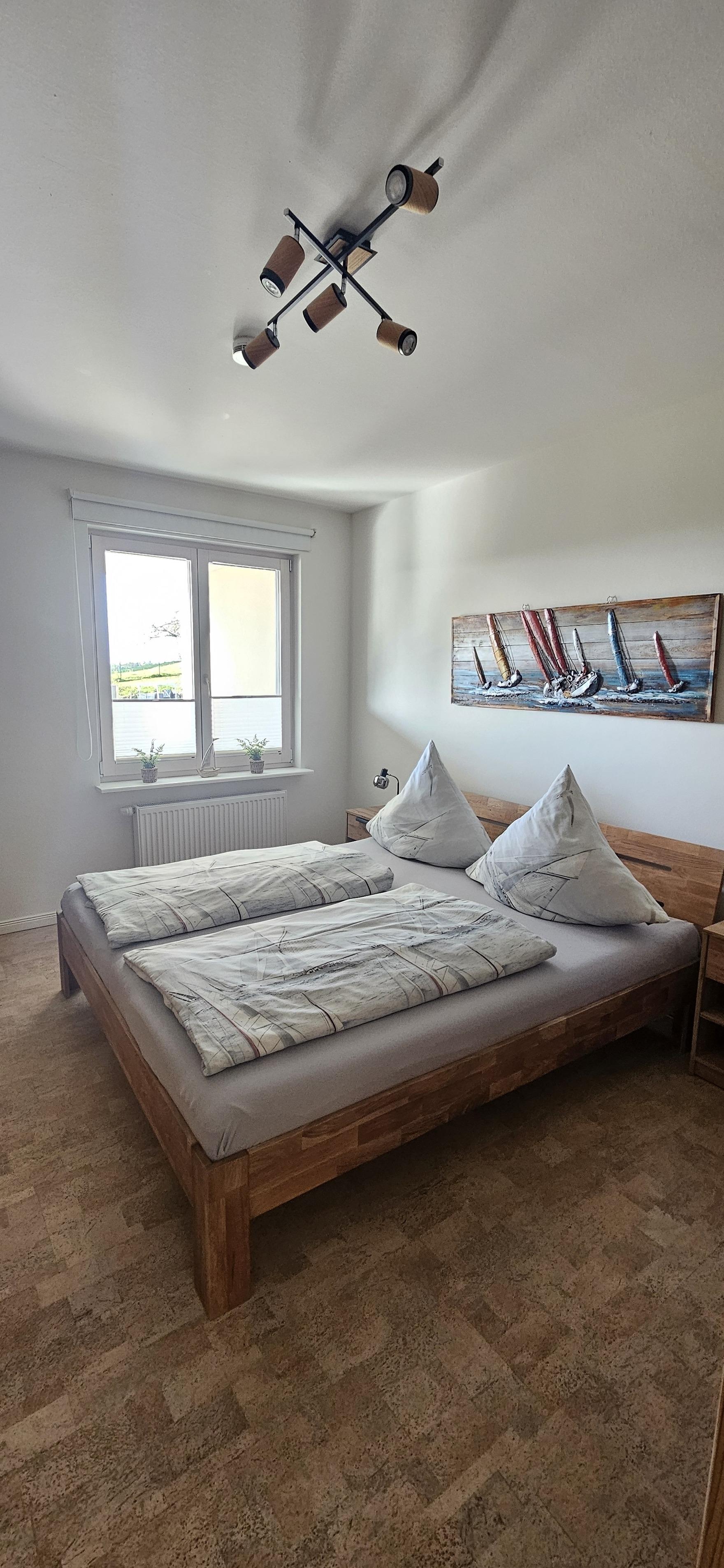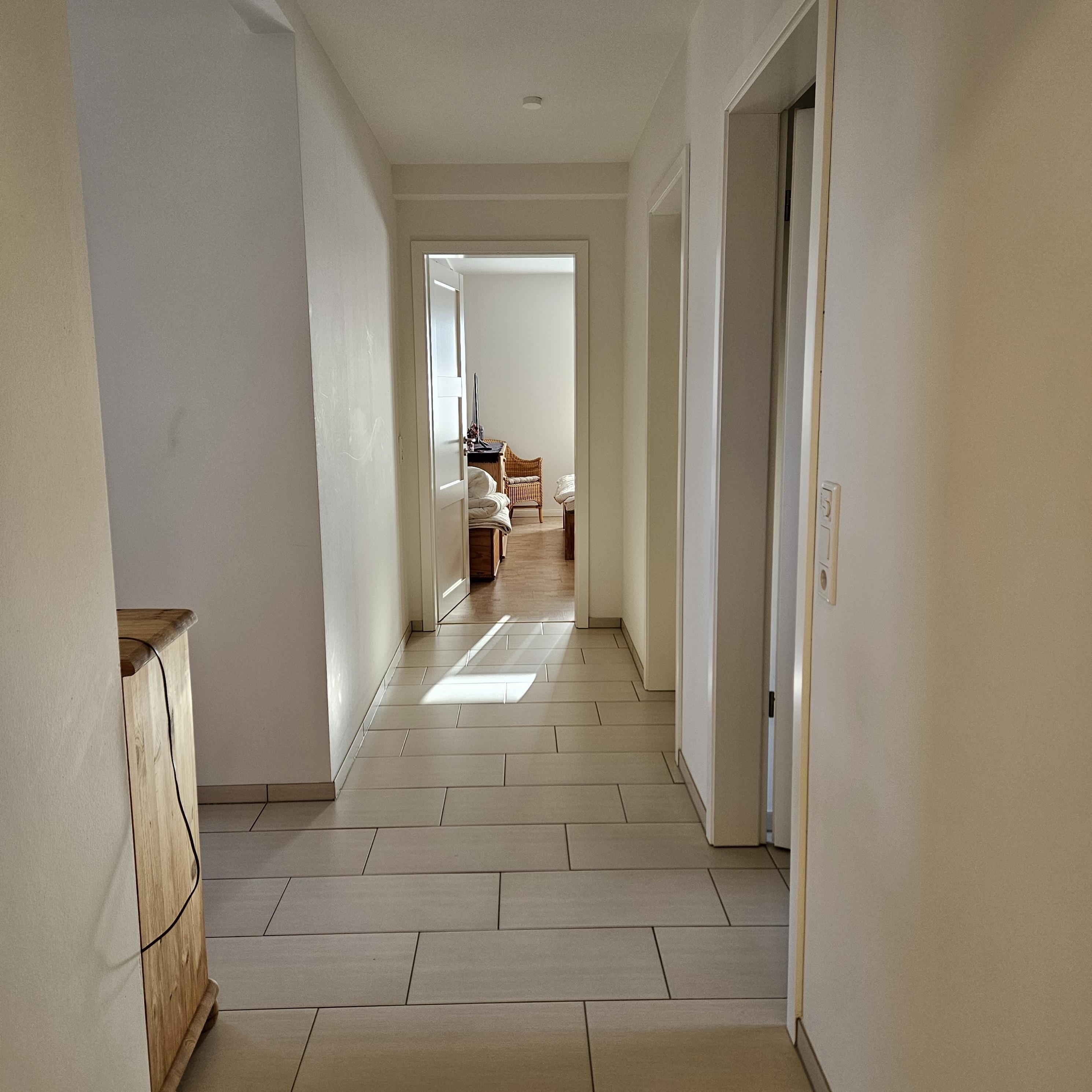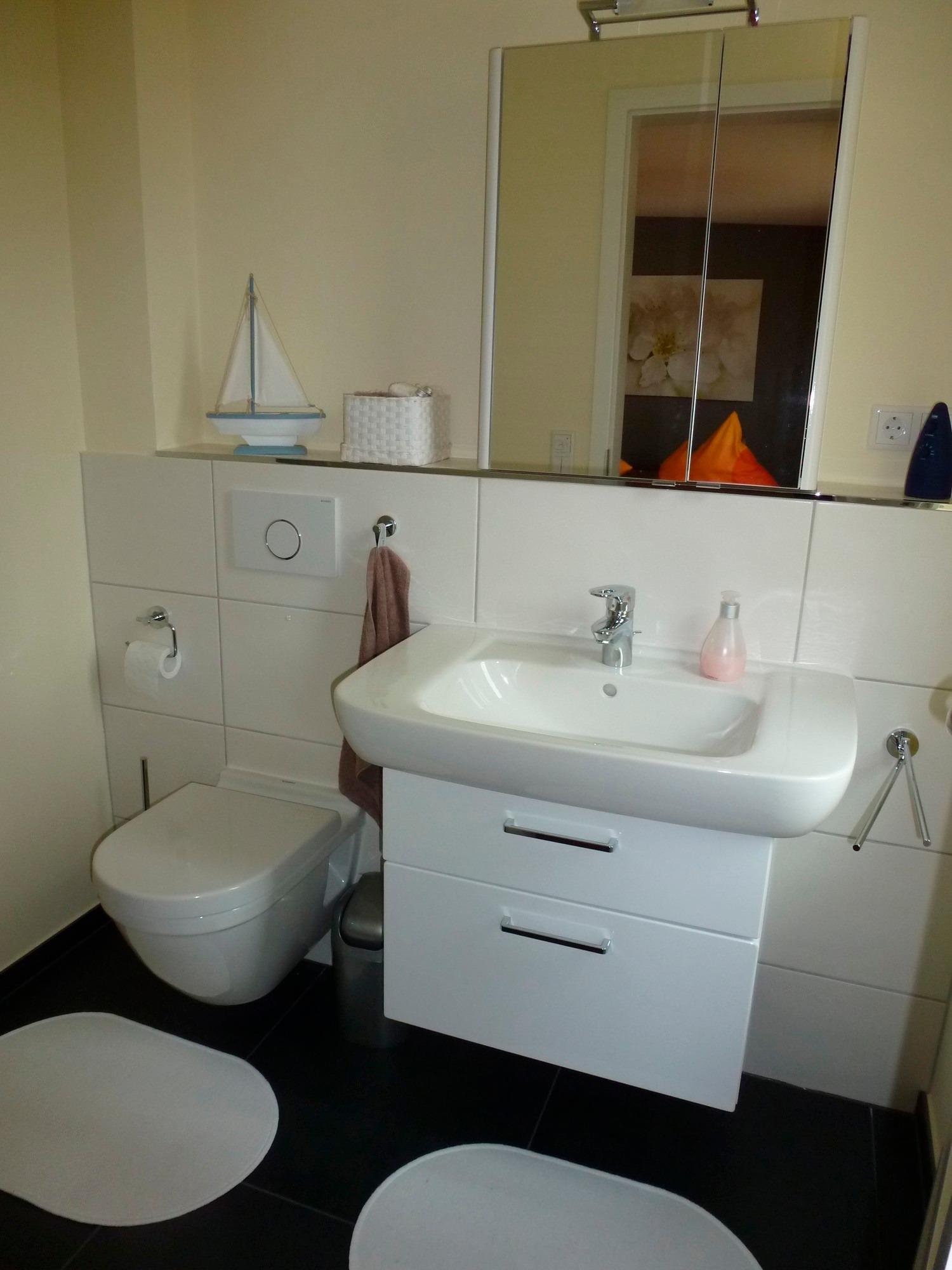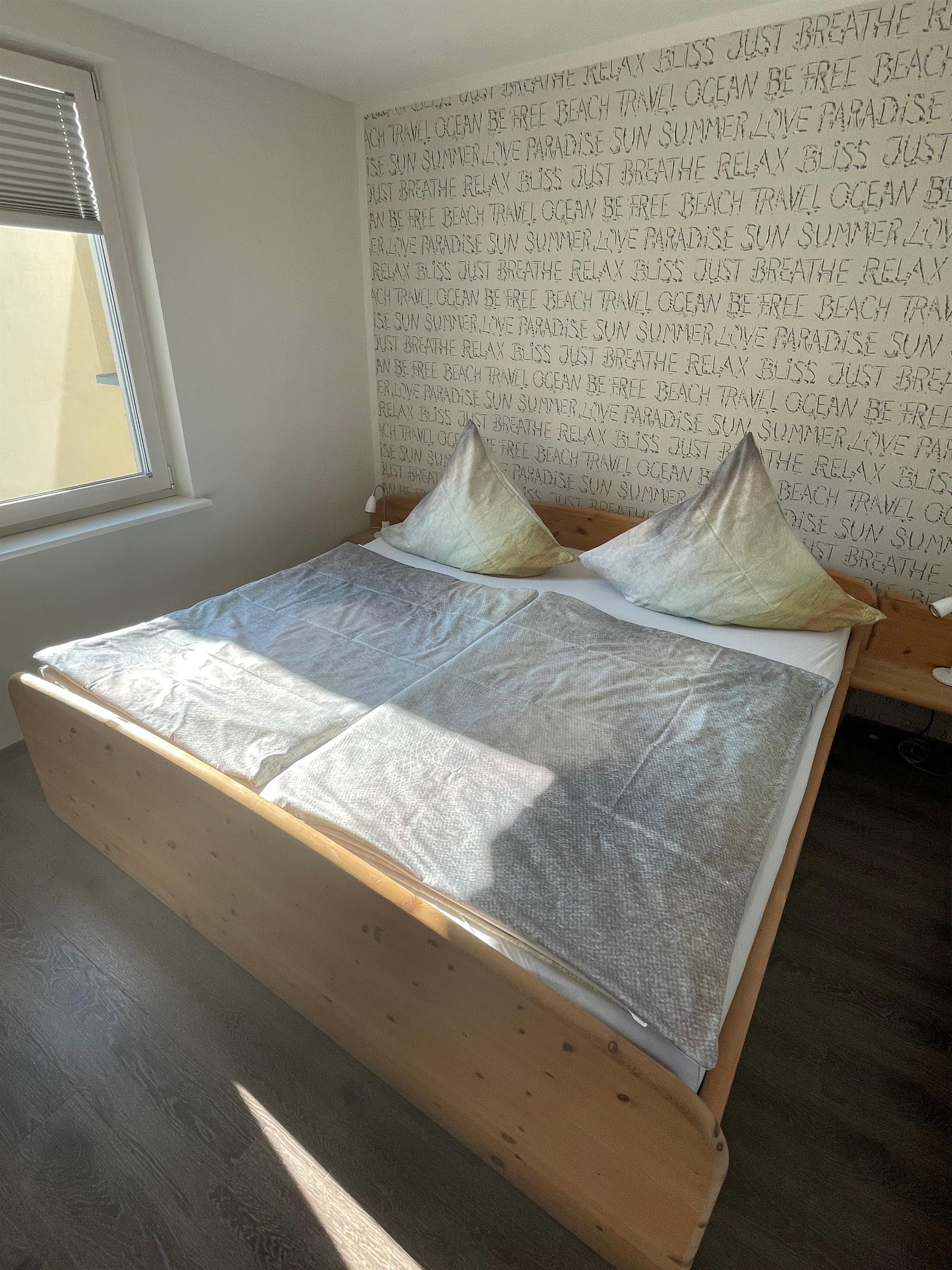 Unsere große Ferienwohnung ist ausgelegt für maximal 5 Personen. Die Wohnung ist 90m² groß und hat selbstverständlich einen separaten Eingang und einen PKW-Stellplatz. Aus dem Eingangsbereich mit Garderobe im Erdgeschoß gelangst Du in die separate Essküche, das große Wohnzimmer, das Schlafzimmer sowie das geräumige Tageslichtbad mit Dusche und WC. Die Ausstattung beinhaltet neben der komplett eingerichteten Küche (Spülmaschine, Backofen, Kochstelle, Kühlschrank mit Eisfach, Mikrowelle, Kaffeemaschine) auch SAT-TV, Audiosystem mit Radio und CD-Player, Internetzugang, 1 sehr bequemes Schlafsofa (Doppelbett 160cm, aufklappbar, 1 Schlafsessel (aufklappbar) im Wohnzimmer, Doppelbett (200cmx200cm) im Schlafzimmer, Fön im Bad. Auf Wunsch zustellbares Kinderbett. Die Wohnung wird komplett über Fußbodenheizung beheizt. Sie haben hier auch eine schöne, überdachte Terrasse mit Blick ins Grüne.