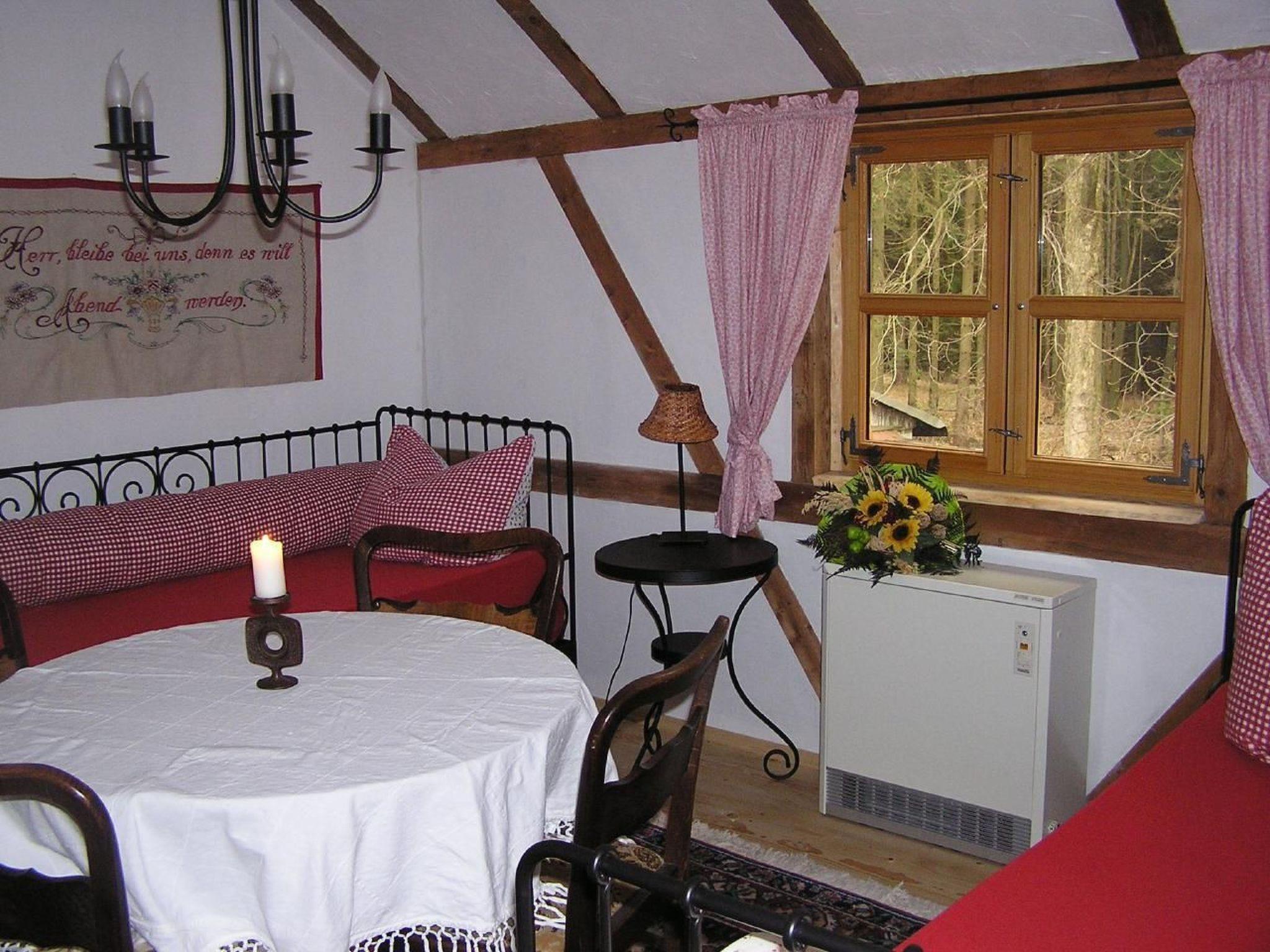 The garden belonging to the house with an outdoor fireplace, which is for your sole use, invites you to enjoy undisturbed moments outdoors. You can relax here in complete privacy, play or simply enjoy the tranquillity of the forest. The direct access to the forest also offers a perfect starting point for hikes and nature walks directly from the front door.