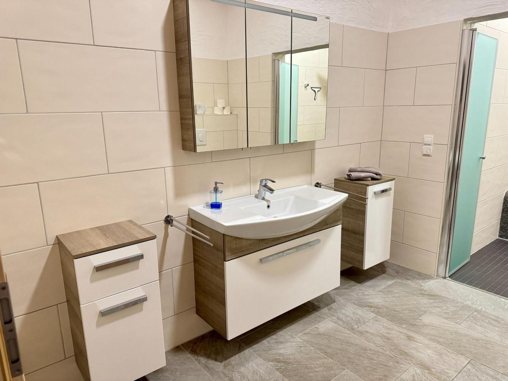Die großzügig geschnittene Ferienwohnung im Erdgeschoss bietet ein behagliches Ambiente mit zwei Schlafzimmern für insgesamt vier Personen sowie einem offenen Wohnzimmer und Essbereich, der nahtlos in eine voll ausgestattete Küche übergeht.Der Wohnbereich ist lichtdurchflutet und einladend gestaltet, mit einer offenen Küche, die mit einem Cerankochfeld, Backofen, großem Kühlschrank, Gefrierfach und Geschirrspüler ausgestattet ist. Zudem stehen zwei komplette Sets an Geschirr und Besteck, ein Toaster und ein Wasserkocher zur Verfügung. Für Kaffeeliebhaber gibt es eine klassische Kaffeemaschine. Ein großzügiger Esstisch lädt zu gemeinsamen Mahlzeiten oder unterhaltsamen Spielabenden ein. Die gemütliche Couch, ein Smart-TV und die zeitgemäße Einrichtung sorgen für eine angenehme Atmosphäre. Direkter Zugang zur Terrasse und dem Garten rundet das Wohnzimmer ab.Die Schlafzimmer sind mit hochwertigen Betten (180x200) ausgestattet und bieten wunderbar kuschelige Bettwaren für einen erholsamen Schlaf. Große Kleiderschränke und Nachttische mit Nachtlampen vervollständigen die Einrichtung.Im komfortablen und geräumigen Badezimmer erwartet Sie eine luxuriöse Dusche und ein WC. Eine Waschmaschine und ein Trockner stehen gegen Gebühr im benachbarten Gebäude im zweiten Stockwerk zur Verfügung. Ein abschließbarer Abstellraum für Fahrräder und E-Bikes mit Lademöglichkeiten ist ebenfalls vorhanden.Die Zufriedenheit und das Wohlbefinden unserer Gäste, insbesondere Familien, liegen uns sehr am Herzen. Auf Wunsch stellen wir gerne kostenfreie Babybetten mit passender Bettwäsche, Wickelkommoden, Babybadewannen, Rausfallschutz und Tritthocker zur Verfügung, um den Aufenthalt für Eltern und ihre Kleinen so angenehm wie möglich zu gestalten.Darüber hinaus bieten wir in unserem Abstellraum kostenfrei Bollerwagen zur Ausleihe an, damit Familien bequem ihre Ausflüge in die Umgebung oder zum nahegelegenen Strand unternehmen können. Unsere Gäste sollen sich bei uns wie zu Hause fühlen und einen unbeschwerten Urlaub genießen können, ganz gleich, ob sie als Familie oder in anderer Konstellation anreisen.