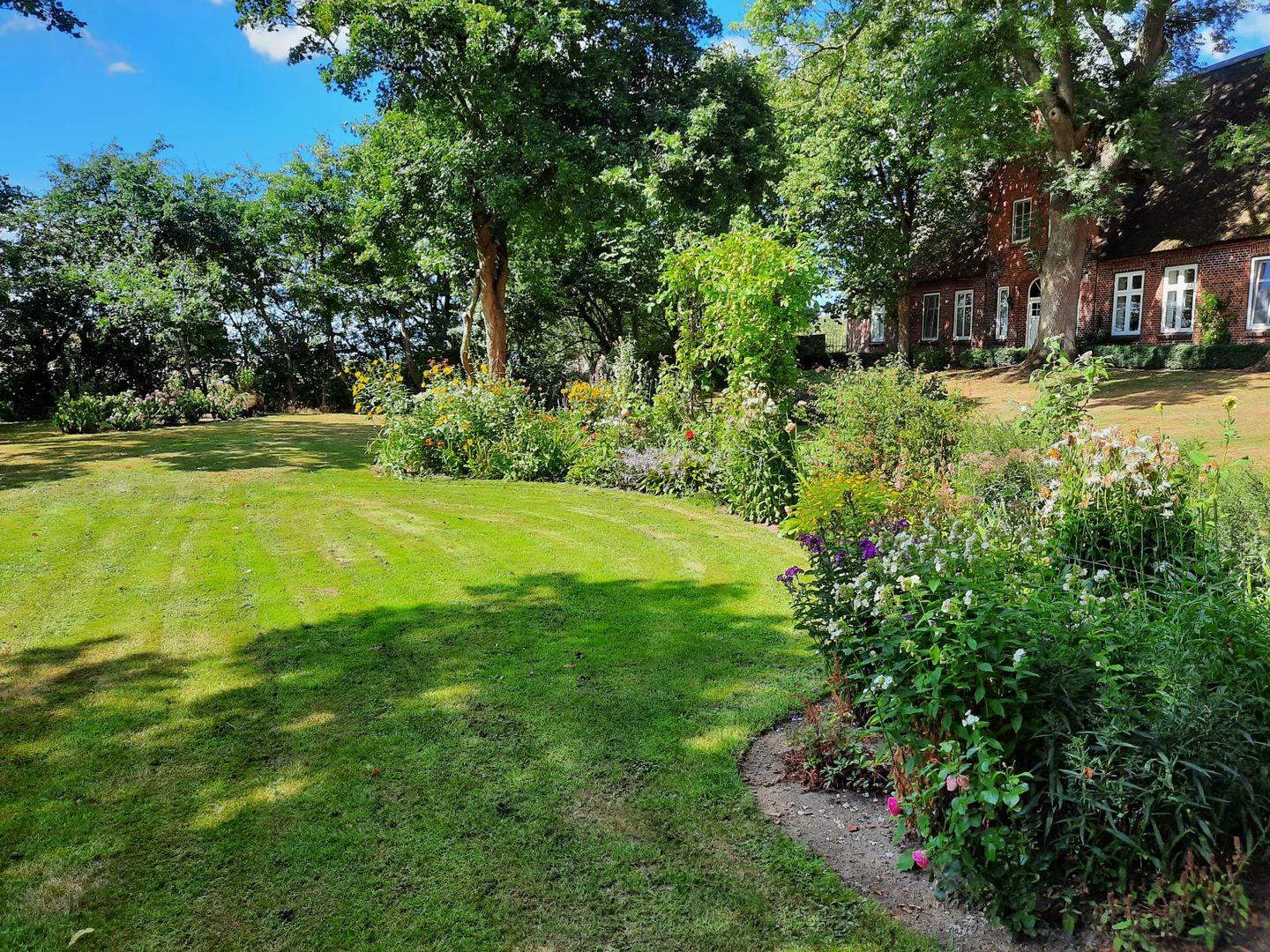 Besonders hervorzuheben ist der Garten mit Liegewiese und Teich, der zum Verweilen und Entspannen alle Gästen aus allen 4 Wohnungen einlädt. Genießen Sie die frische Luft auf der Terrasse mit Gartenmöbeln, während Sie einen Blick auf die Umgebung werfen. Haustiere sind in der Wohnung herzlich willkommen, sodass Sie Ihren vierbeinigen Freund mitbringen können, um gemeinsam die Natur zu erkunden. Darüber hinaus stehen Parkplätze zur Verfügung, und die Notwendigkeit eines Autos wird empfohlen, um die Schönheit der Umgebung in vollen Zügen genießen zu können.