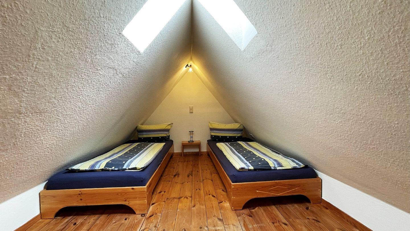 Die Unterkunft ist großzügig geschnitten und verfügt über insgesamt drei Zimmer, darunter zwei einladende Schlafzimmer, in denen bis zu vier Personen bequem schlafen können. Jedes Schlafzimmer ist liebevoll eingerichtet und verspricht erholsame Nächte. Der erste Schlafraum liegt mit begehbarem Kleiderschrank und einem Doppelbett auf gleicher Ebene mit Wohnraum und Küchenbereich. Der zweite Schlafraum mit 2 Einzelbetten und ist offen und über eine Wendeltreppe zu erreichen. Der gemütliche Wohnbereich mit Sofaecke und Esstisch lädt zu geselligem Beisammensein ein. Hier kann man entspannte Stunden verbringen, vielleicht bei einem guten Film, den man auf dem modernen TV genießt. Die offene Küche ist komplett ausgestattet – egal, ob Sie ein deftiges Frühstück oder ein romantisches Dinner zubereiten möchten, hier finden Sie alles, was Sie dafür benötigen: Herd, Backofen, Kühlschrank und sogar eine Kaffeemaschine für den perfekten Start in den Tag.