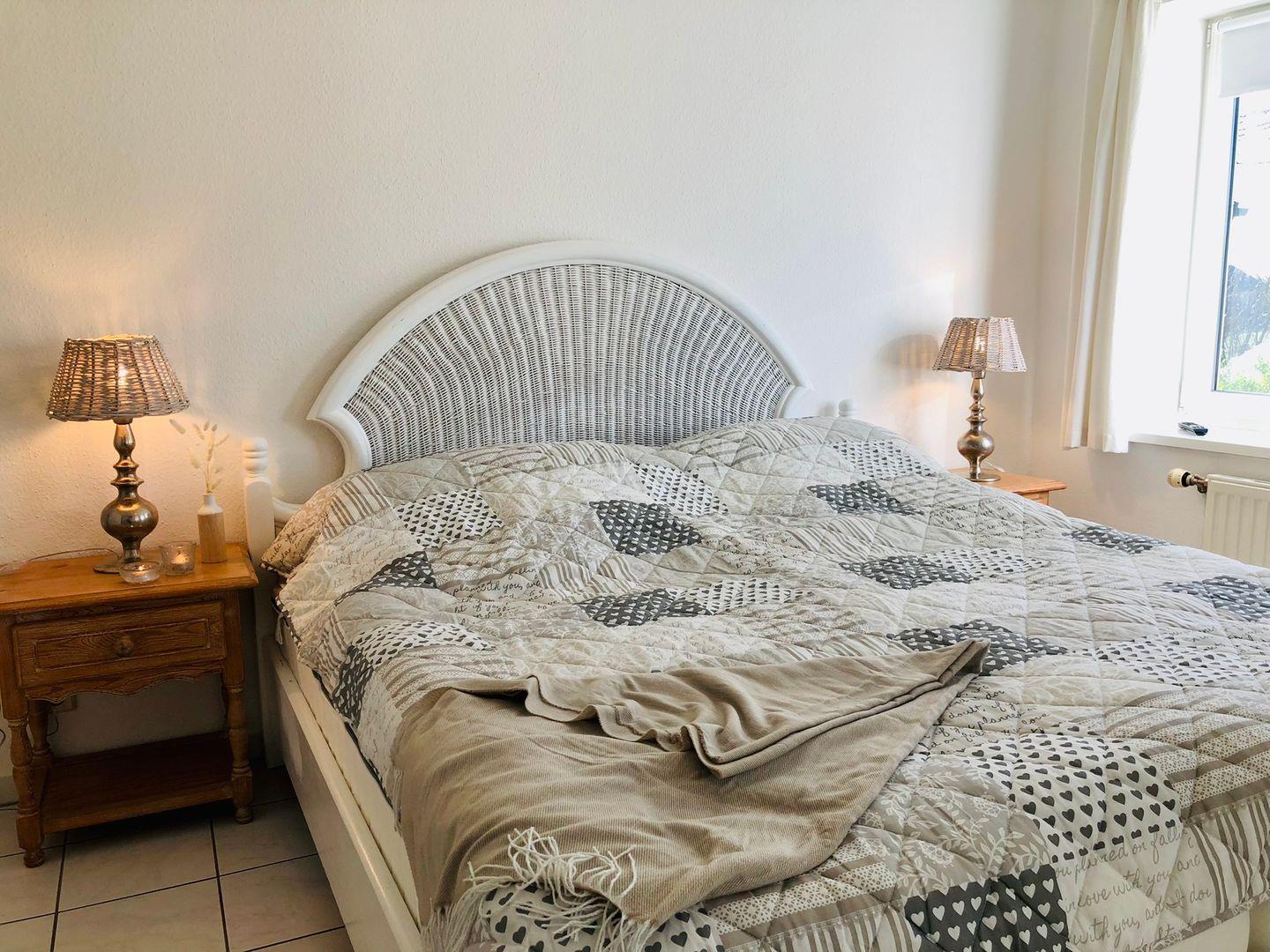 Zwei Schlafzimmer bieten genügend Platz für bis zu vier Personen. Beide Schlafzimmer verfügen über ein Doppelbett. Bettwäsche und Handtücher sind nicht im Preis inbegriffen - können aber auf Wunsch kostenpflichtig hinzugebucht werden. Das Duschbad ist hell und praktisch. Im Hauswirtschaftsraum stehen Waschmaschine und Trockner kostenfrei bereit, was besonders bei längeren Aufenthalten oder Urlaub mit Kindern sehr angenehm ist. Für kleine Kinder haben wir eine kleine Auswahl von Kinderbüchern und Spielsachen in der Wohnung. Ein Hochstuhl und Kinderreisebett können kostenfrei hinzugebucht werden.