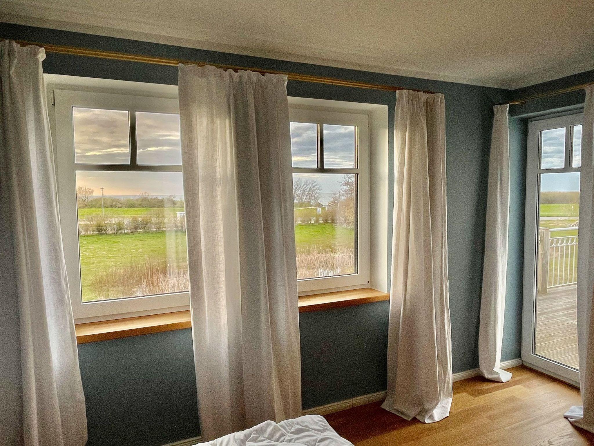 Das Schlafzimmer besticht mit einem großen Doppelbett und direktem Meerblick. In Schlaf- und Wohnzimmer sind zusätzlich zu den schönen Vorhängen separate Blindouts vorhanden, die je nach Verdunkelungswunsch zusätzlich zugezogen werden können. Einem erholsamen Urlaub für zwei Erwachsene und zwei Kinder (bis 15 Jahre) steht in dieser Ferienwohnung nichts entgegen. Damit Sie bei der Anfahrt Platz sparen, stehen für Ihr Kleinkind ein Babybett ohne Matratze sowie ein Hochstuhl bereit. Ein Wäscheset kann pro Person kostenpflichtig zugebucht werden.