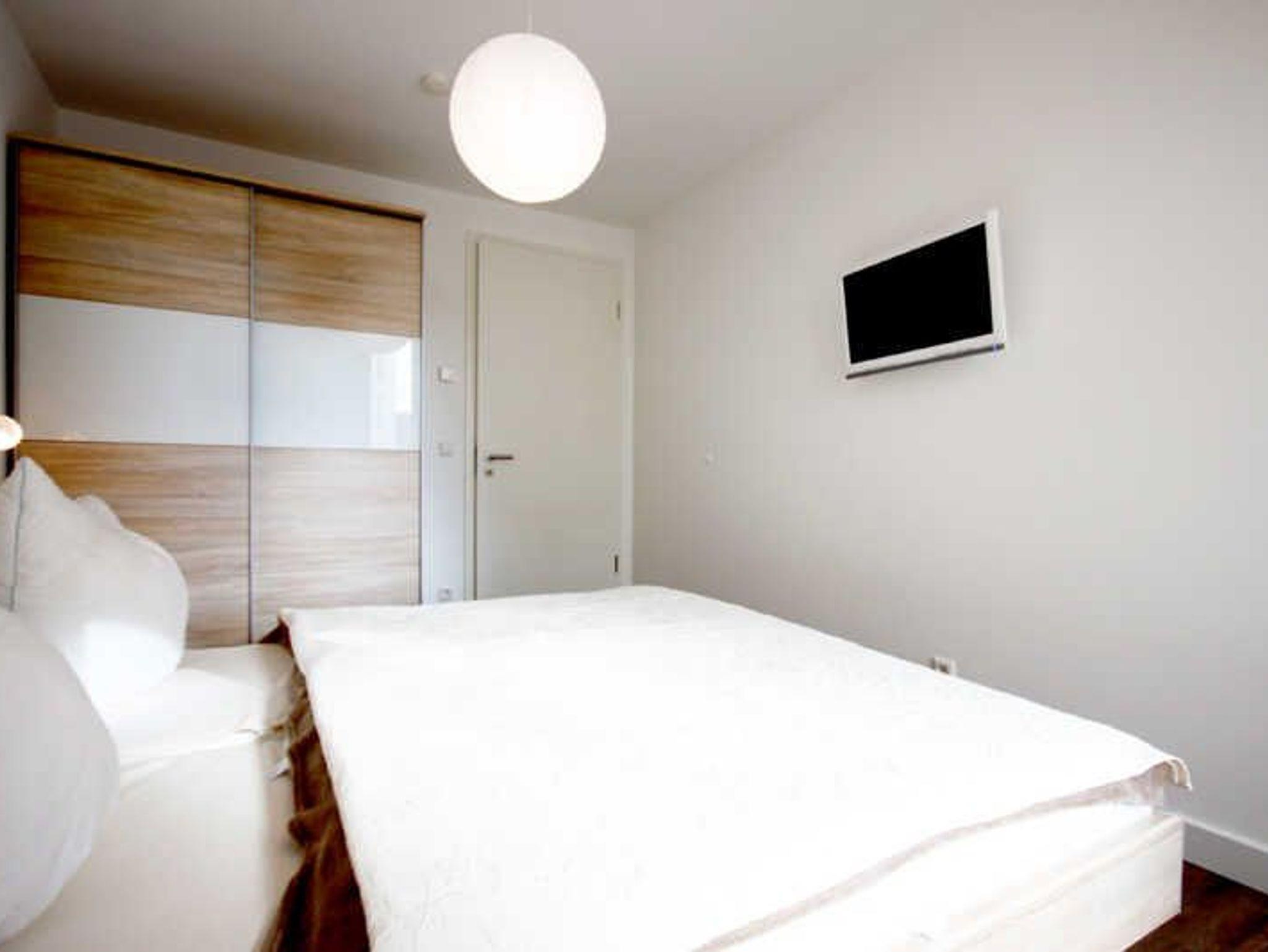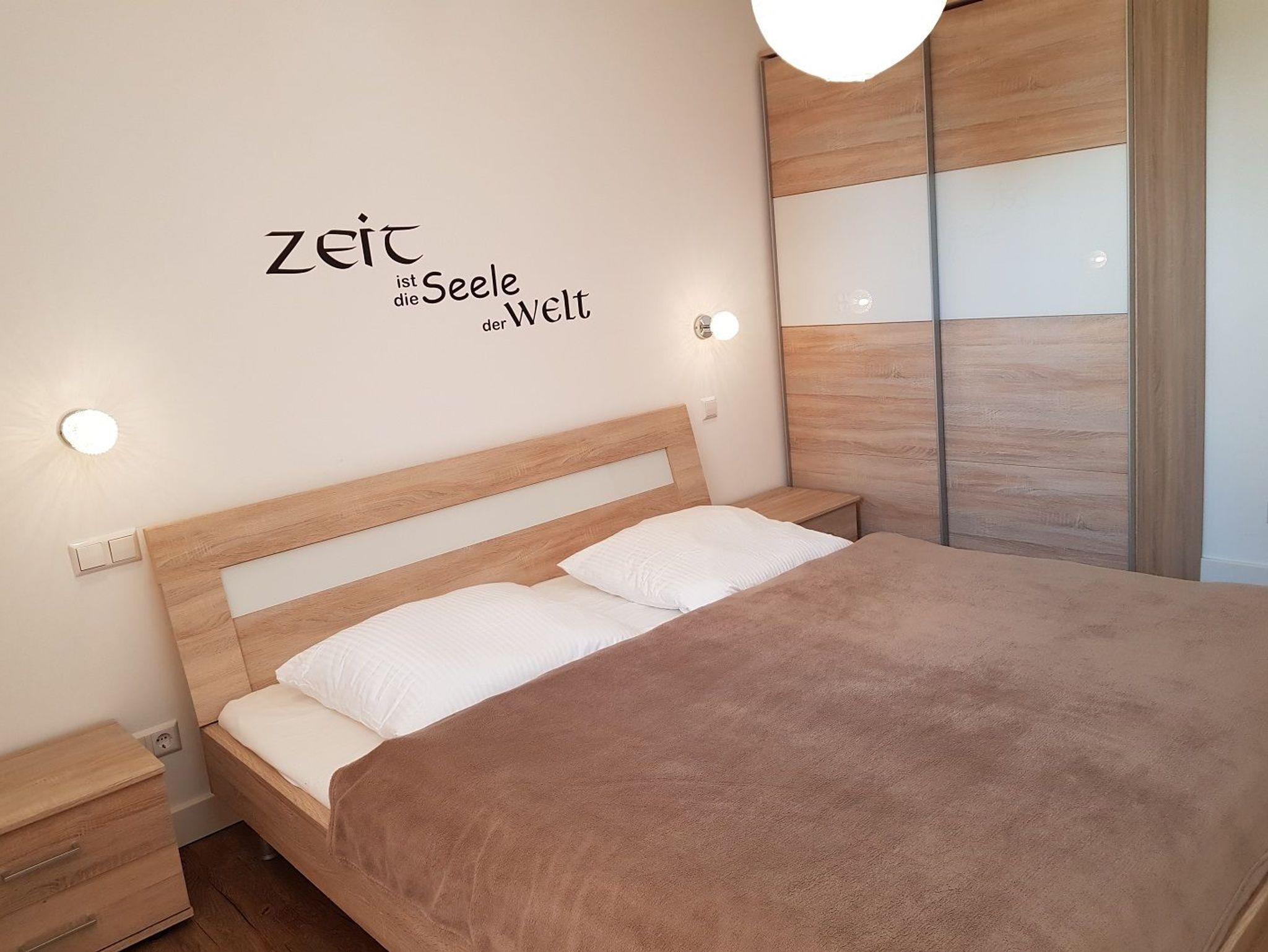 Im kombinierten Ess- und Wohnraum befindet sich ein Tisch mit vier Stühlen. Ergänzt wird die Ausstattung im Wohnbereich mit einer Schlafcouch und einem TV- Gerät. Ein DVD-Player und Radio sind ebenfalls vorhanden. In der Einbauküche finden Sie ein Cerankochfeld, Backofen, eine Mikrowelle, Geschirrspüler sowie Kühlschrank mit integriertem Gefrierfach. Der Schlafbereich wurde mit großem Doppelbett, geräumigem Kleiderschrank und einem weiteren Flatscreen-TV ausgestattet. Im eleganten Bad finden Sie eine Dusche und einen großen Waschtisch mit durchgehendem Spiegel. Auf der nach Süd-West ausgerichteten Terrasse stehen ein Tisch, zwei Stühle und zwei Hocker. Die integrierte Sauna ist vom Wohnbereich zugänglich und wird über Münzeinwurf betrieben (2,00 Euro Stücke / 4,00 Euro für 40 min). Das kostenfreie WLAN in der Unterkunft ist ausschließlich für die Verwendung von Social Media und den Austausch von Bildern mit Familie und Freunden gedacht. Die Nutzung zum Streamen von Filmen ist nicht vorgesehen. Zur Wohnung gehört ein kostenfreier Tiefgaragenplatz. Bitte beachten Sie die Durchfahrtshöhe von max. 1,90 m. Bei Überschreitung der maximalen Durchfahrtshöhe, besteht die Möglichkeit auf einen kostenpflichtigen Parkplatz in unmittelbarer Nähe auszuweichen. Der im Gebäude installierte Aufzug erleichtert den Transport der mitgebrachten Koffer. Zudem befindet sich ebenfalls im Untergeschoss ein separater abschließbarer Fahrradraum. Hier noch einige Hinweise: Es handelt sich um eine Nichtraucherwohnung. Es sind keine Haustiere erlaubt. Wäscheset, Kinderreisebett und Kinderhochstuhl können kostenpflichtig zugebucht werden. Eine Waschmaschine und ein Trockner stehen im separaten Waschraum im Erdgeschoss des Objekts zur Verfügung (gegen Gebühr / 0,50 Euro Münzen). Sichern Sie sich zusätzlich den Anspruch auf einen der begehrten Strandkörbe nur ein paar Meter entfernt von den rauschenden Wellen der Ostsee (Anfang Mai - Ende August) und buchen Sie jetzt zu besonderen Konditionen (12,00 Euro pro Tag oder 75,00 Euro pro Woche.)