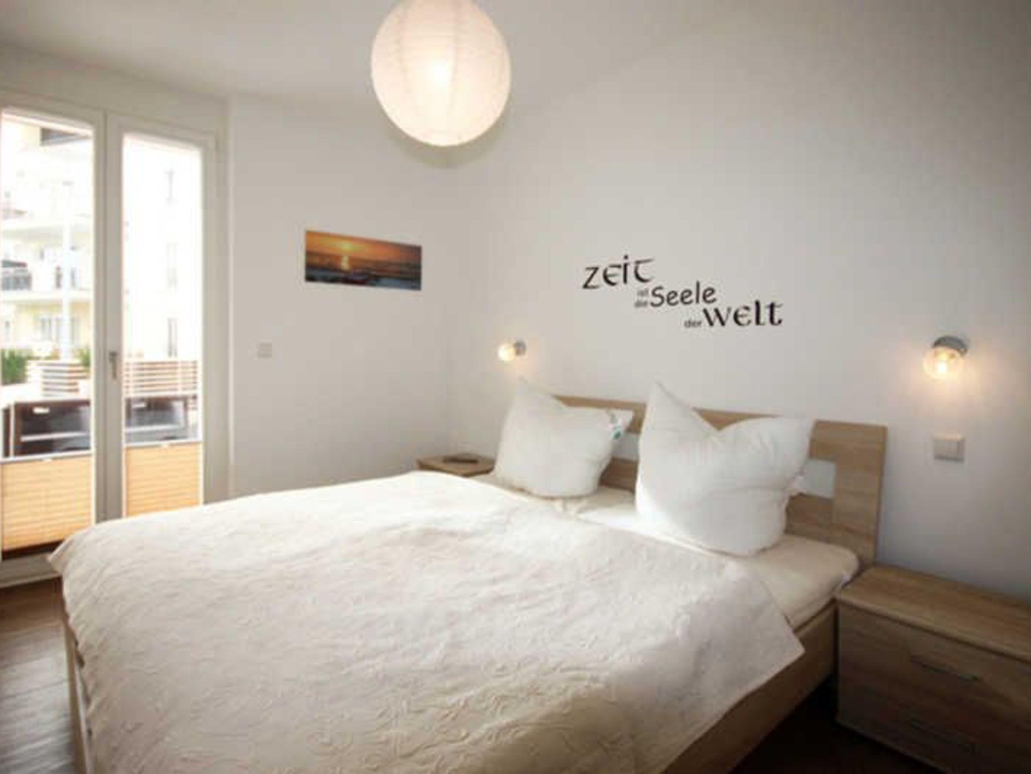 Im kombinierten Ess- und Wohnraum befindet sich ein Tisch mit vier Stühlen. Ergänzt wird die Ausstattung im Wohnbereich mit einer Schlafcouch und einem TV- Gerät. Ein DVD-Player und Radio sind ebenfalls vorhanden. In der Einbauküche finden Sie ein Cerankochfeld, Backofen, eine Mikrowelle, Geschirrspüler sowie Kühlschrank mit integriertem Gefrierfach. Der Schlafbereich wurde mit großem Doppelbett, geräumigem Kleiderschrank und einem weiteren Flatscreen-TV ausgestattet. Im eleganten Bad finden Sie eine Dusche und einen großen Waschtisch mit durchgehendem Spiegel. Auf der nach Süd-West ausgerichteten Terrasse stehen ein Tisch, zwei Stühle und zwei Hocker. Die integrierte Sauna ist vom Wohnbereich zugänglich und wird über Münzeinwurf betrieben (2,00 € Stücke / 4,00 € für 40 min). Das kostenfreie WLAN in der Unterkunft ist ausschließlich für die Verwendung von Social Media und den Austausch von Bildern mit Familie und Freunden gedacht. Die Nutzung zum Streamen von Filmen ist nicht vorgesehen. Zur Wohnung gehört ein kostenfreier Tiefgaragenplatz. Bitte beachten Sie die Durchfahrtshöhe von max. 1,90 m. Bei Überschreitung der maximalen Durchfahrtshöhe, besteht die Möglichkeit auf einen kostenpflichtigen Parkplatz in unmittelbarer Nähe auszuweichen. Der im Gebäude installierte Aufzug erleichtert den Transport der mitgebrachten Koffer. Zudem befindet sich ebenfalls im Untergeschoss ein separater abschließbarer Fahrradraum. Hier noch einige Hinweise: Es handelt sich um eine Nichtraucherwohnung. Es sind keine Haustiere erlaubt. Wäscheset, Kinderreisebett und Kinderhochstuhl können kostenpflichtig zugebucht werden. Eine Waschmaschine und ein Trockner stehen im separaten Waschraum im Erdgeschoss des Objekts zur Verfügung (gegen Gebühr / 0,50 € Münzen). Sichern Sie sich zusätzlich den Anspruch auf einen der begehrten Strandkörbe nur ein paar Meter entfernt von den rauschenden Wellen der Ostsee (Anfang Mai - Ende August) und buchen Sie jetzt zu besonderen Konditionen (12,00 € pro Tag oder 75,00 € pro Woche.)