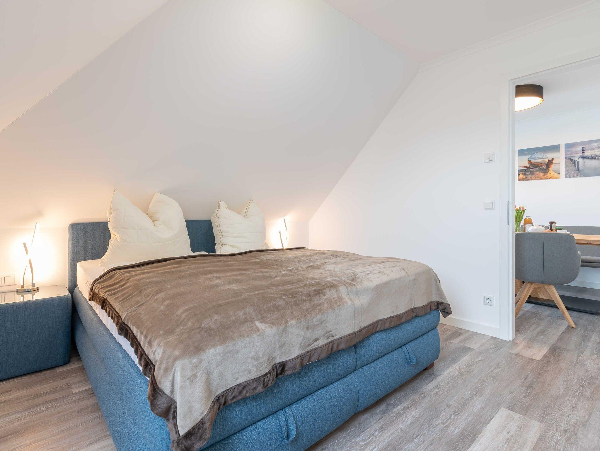 Alle Schlafzimmer sind mit einem großen Boxspringbett (1,80 x 2,00 m / getrennte Matratzen), komfortablen Kleiderschränken und je einem Flat-TV 43 Zoll ausgestattet.