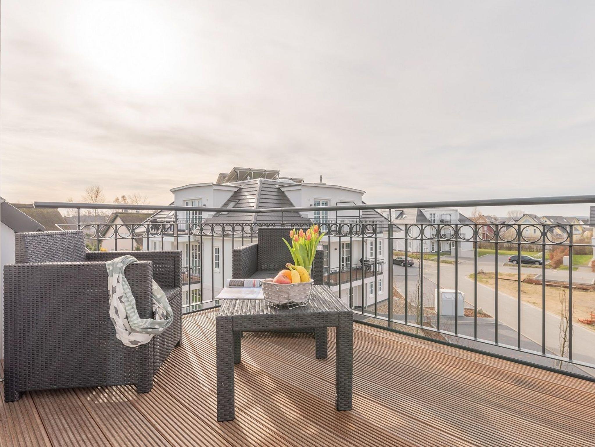 Die Ferienwohnung verfügt über einen großen Balkon mit direktem Ostseeblick.