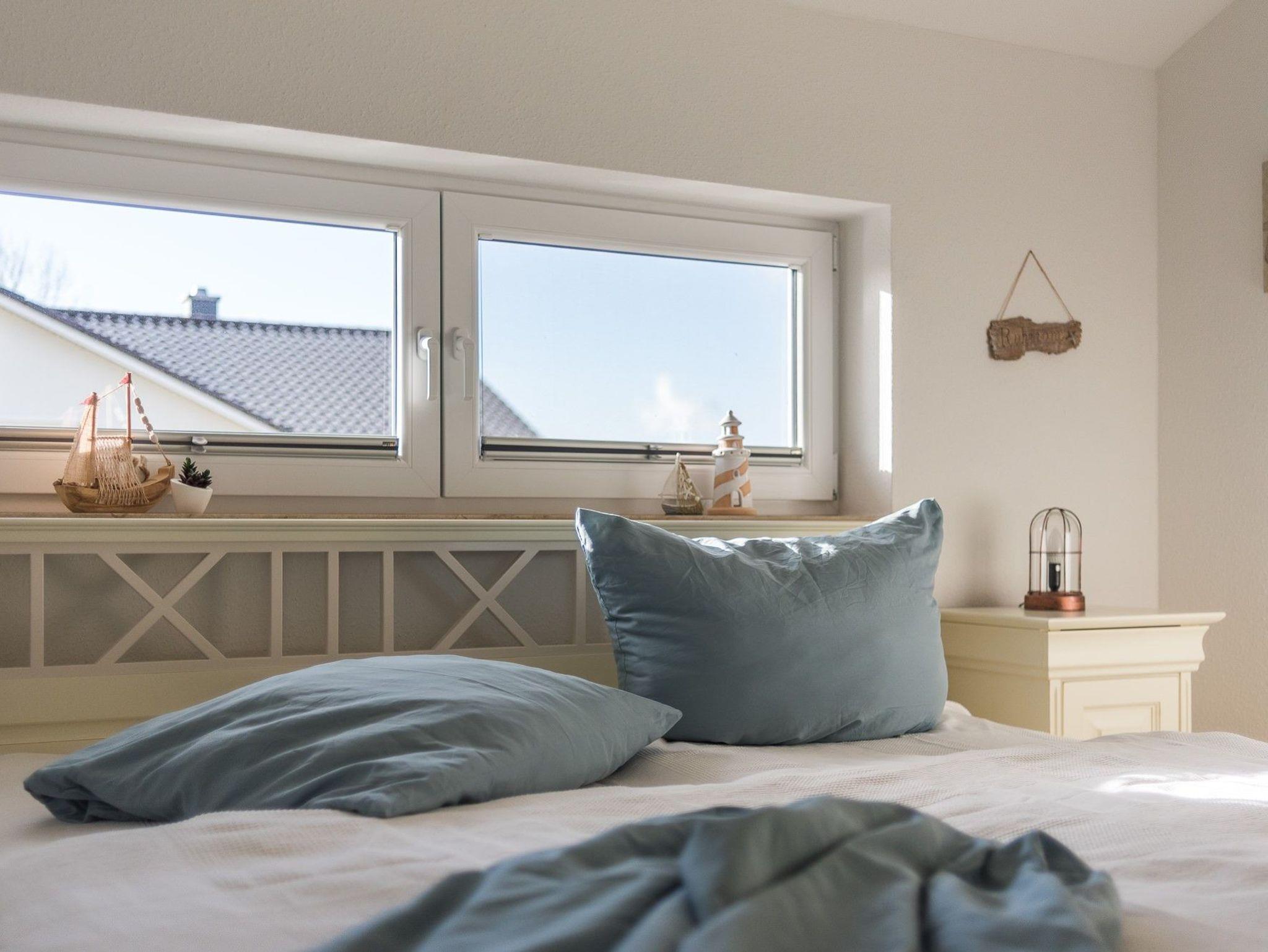 Die Unterkunft verfügt über zwei Schlafzimmer ausgestattet mit einem Boxspringbett bzw. einem Doppelbett mit jeweils einem LED-TV.