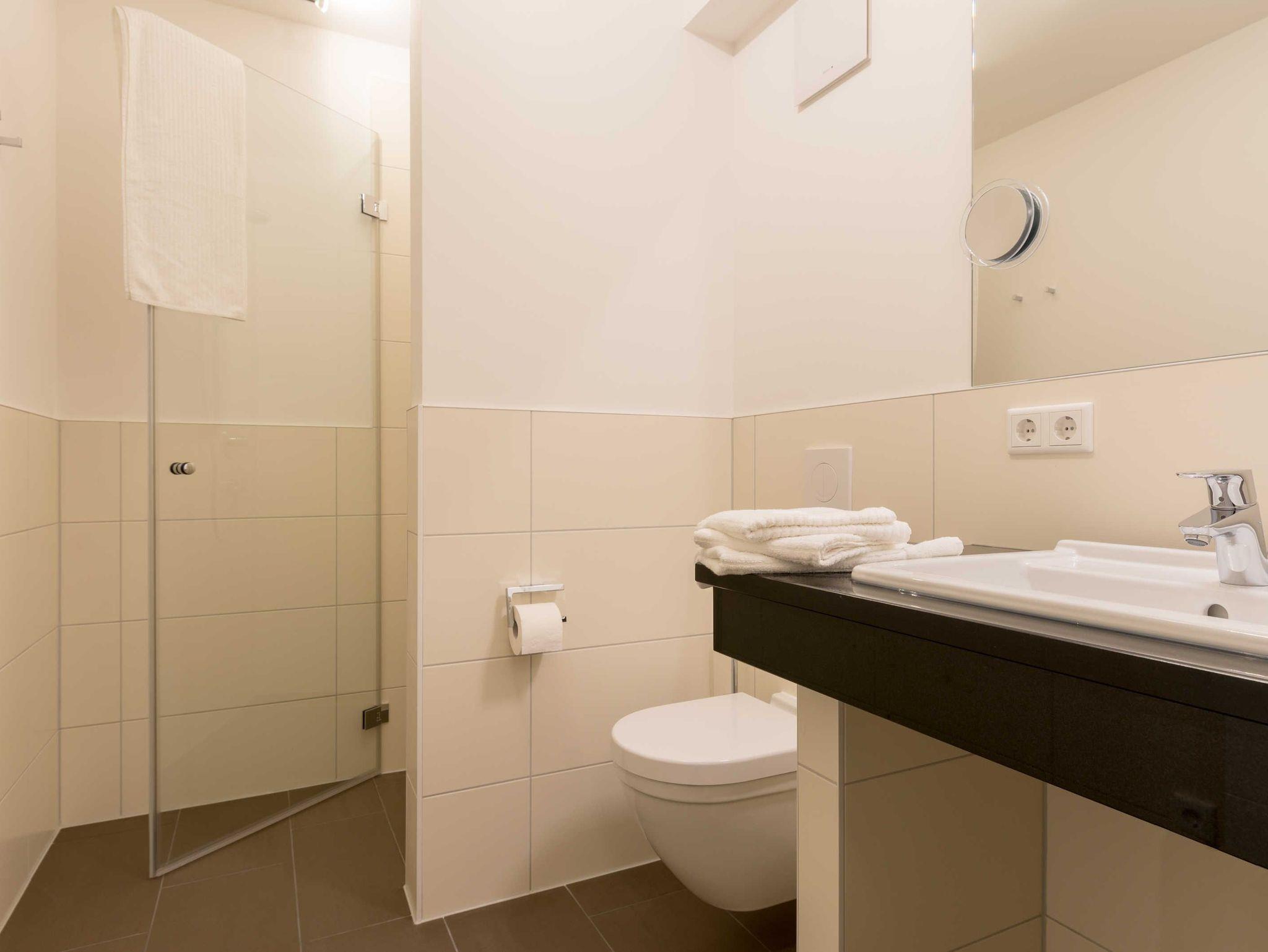 Der Wohn- und Essbereich verfügt über eine gemütliche Couch, einen Couchtisch sowie einen Esstisch mit vier Stühlen. Ein Flat-Screen-TV, ein DVD-Player und eine kleine Musikanlage gehören zur technischen Ausstattung. An kühlen Herbst- und Wintertagen sorgt in allen Räumen eine Fußbodenheizung für Wärme und Gemütlichkeit. Die exklusive hochmoderne Einbauküche mit einer Mikrowelle inkl. Grillfunktion, einer Kühl-Gefrierkombination, einem Geschirrspüler sowie einem 2-Platten-Glaskeramikkochfeld mit Dunstabzugshaube lässt keine Wünsche offen. Weitere Küchengeräte wie Wasserkocher, Toaster, Kaffeemaschine, Geschirr etc. sind selbstverständlich. In der Wohnung befinden sich zwei Schlafzimmer mit Doppelbett und Kleiderschrank (1 Boxspringbett 1,80 x 2,00 m mit zwei Einzelmatratzen und ein Boxspringbett 1,40 m x 2,0 m mit einer durchgehender Matratze). Das große Schlafzimmer verfügt über einen weiteren Flat-Screen-TV. Vom Wohnzimmer aus ist der Balkon in Nord-West Richtung zu erreichen. Das Badezimmer ist elegant gefliest mit ebenerdiger Dusche.