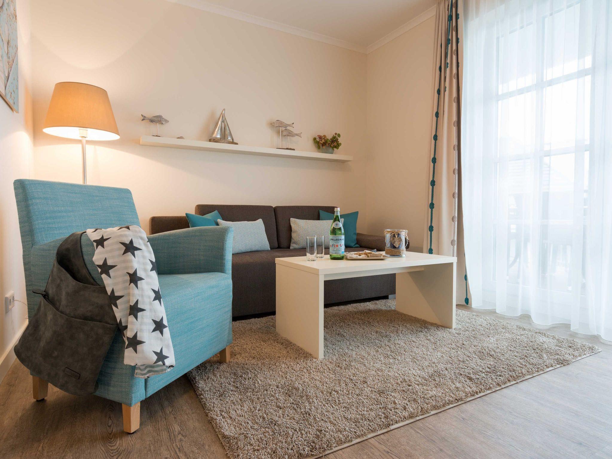Die liebevoll eingerichtete Ferienwohnung befindet sich im Obergeschoß des Hauses Strandhafer und bietet Platz für max. 4 Personen. Die Wohnung verfügt über zwei Schlafzimmer, einen Wohn-/ Essbereich inkl. offener Einbauküche, ein Duschbad mit ebenerdiger Dusche und einen Balkon mit weitem Ostseeblick. Am Objekt befinden sich zudem ein kostenfreier PKW-Stellplatz und Bügel zum Anschließen von Fahrrädern.