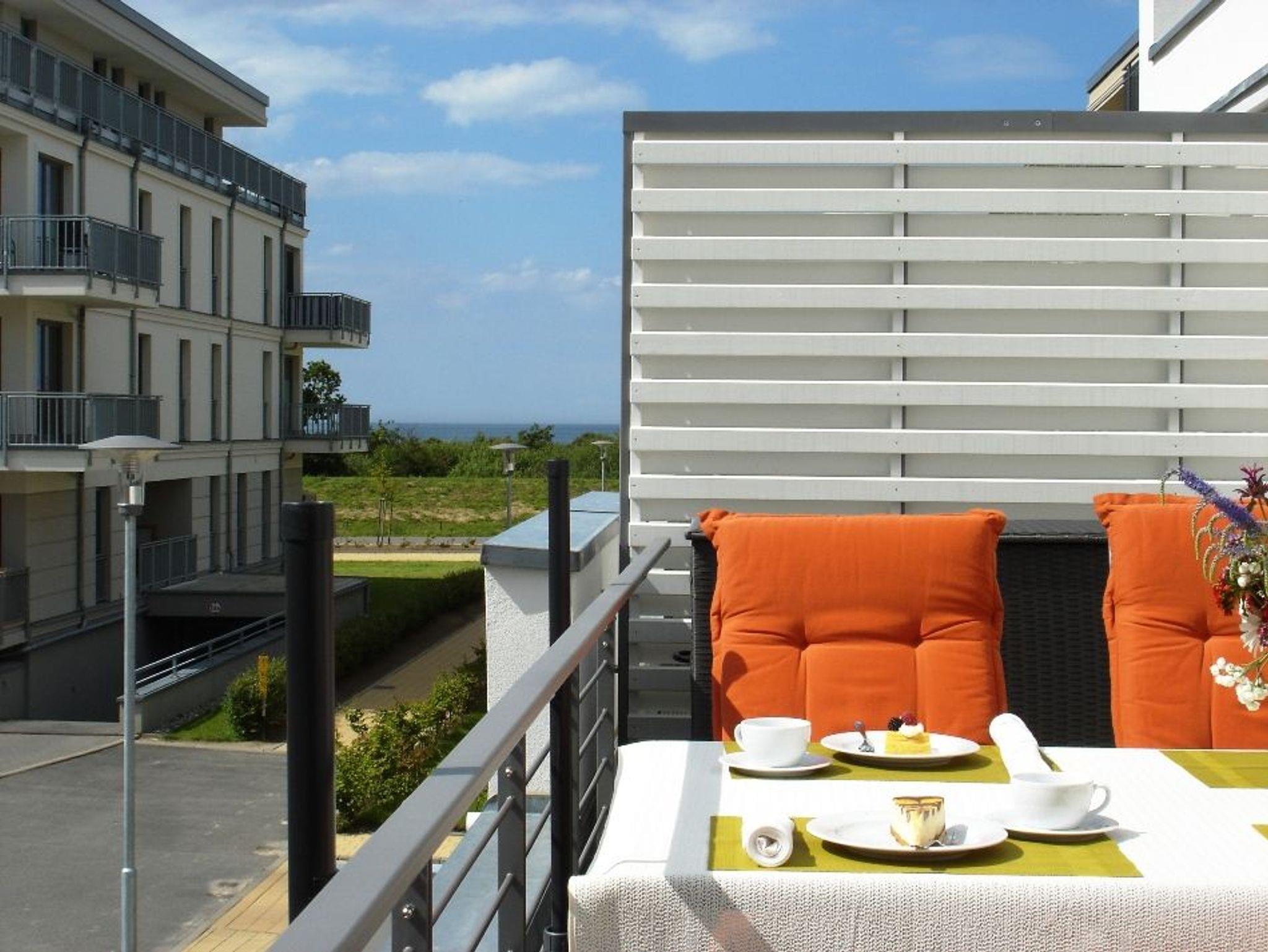 Strandnahe 2-Raumwohnung für 4 Personen mit eigenem Strandkorb, eigener Sauna und Balkon mit seitlichem Meerblick im 1.OG.