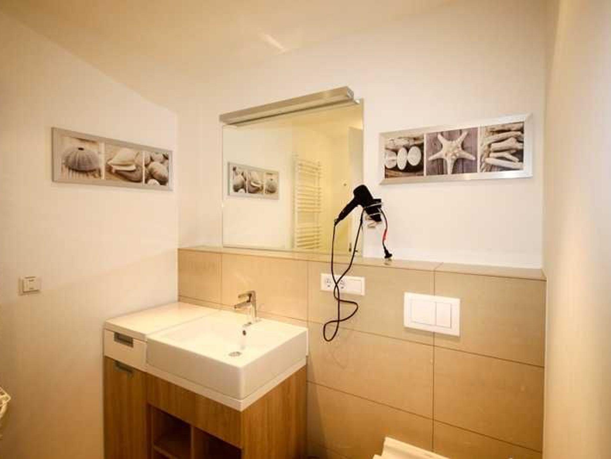 Die im Wohnbereich vorhandene komfortable L-förmige Couch lädt zum Relaxen ein. Sie kann auch ausgezogen werden. Ein TV- Gerät, DVD-Player, HiFi-Anlage und eine Spielkonsole Playstation 3 gehören zur technischen Ausstattung. Im offenen Ess- und Küchenbereich befindet sich ein Tisch mit vier Stühlen. Hier können auch lustige Spiele bei fehlendem Strandwetter die Langeweile vertreiben. In der Einbauküche finden Sie Geschirrspüler, Kaffeemaschine, Wasserkocher, Toaster und Kühlschrank, inklusive Gefrierfach. Das Schlafzimmer verfügt über ein Boxspringbett, ein TV-Gerät und natürlich einen Kleiderschrank. Auf dem Balkon, der nach Westen ausgerichtet ist, können Sie gemeinsame Mahlzeiten genießen oder vom Strandkorb aus, den Blick auf das Meer genießen. Der Zugang erfolgt direkt über den Wohnraum oder das Schlafzimmer. Das moderne Bad ist mit einer bodengleichen Dusche und einem Waschtisch mit großem Spiegel ausgestattet. Die Sauna wurde im Wohnbereich miteingefügt. Die WLAN-Verbindung ist ausschließlich für die Verwendung von Social Media und den Austausch von Bildern mit Familie und Freunden gedacht. Die Nutzung zum Streamen, z.B. von Filmen, ist nicht vorgesehen.Ihren PKW können Sie in der Tiefgarage der Villa Seeadler abstellen. Bitte beachten Sie die Durchfahrtshöhe von max. 1,90 m. Bei Überschreitung der maximalen Durchfahrtshöhe, besteht die Möglichkeit auf einen kostenpflichtigen Parkplatz in unmittelbarer Nähe auszuweichen. Der im Gebäude installierte Aufzug erleichtert den Transport der mitgebrachten Koffer. Zudem befindet sich ebenfalls in der Tiefgarage einen abschließbaren Fahrradraum. Hier noch einige Hinweise: Die Wohnung ist eine Nichtraucherwohnung. Haustiere sind nicht erlaubt. Für die dritte und vierte Person (ab 3 Jahre) wird ein Aufpreis in Höhe von 10,00 Euro/ÜN pro Person berechnet. Wäscheset, Kinderreisebett und Kinderhochstuhl können kostenpflichtig zugebucht werden. Eine Waschmaschine und ein Trockner stehen im Wachraum im Erdgeschoss des Objekts zur Verfügung (gegen Gebühr / 0,50 Euro Münzen). Sichern Sie sich zusätzlich den Anspruch auf einen der begehrten Strandkörbe nur ein paar Meter entfernt von den rauschenden Wellen der Ostsee (Anfang Mai - Ende August) und buchen Sie jetzt zu besonderen Konditionen (12,00 Euro pro Tag oder 75,00 Euro pro Woche.)