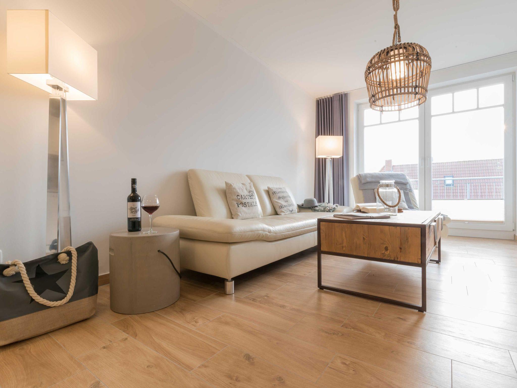 Die lichtdurchflutete Terrassenwohnung im zweiten Obergeschoss ist liebevoll eingerichtet und bietet allen Komfort auf ca. 80 qm für vier Personen.