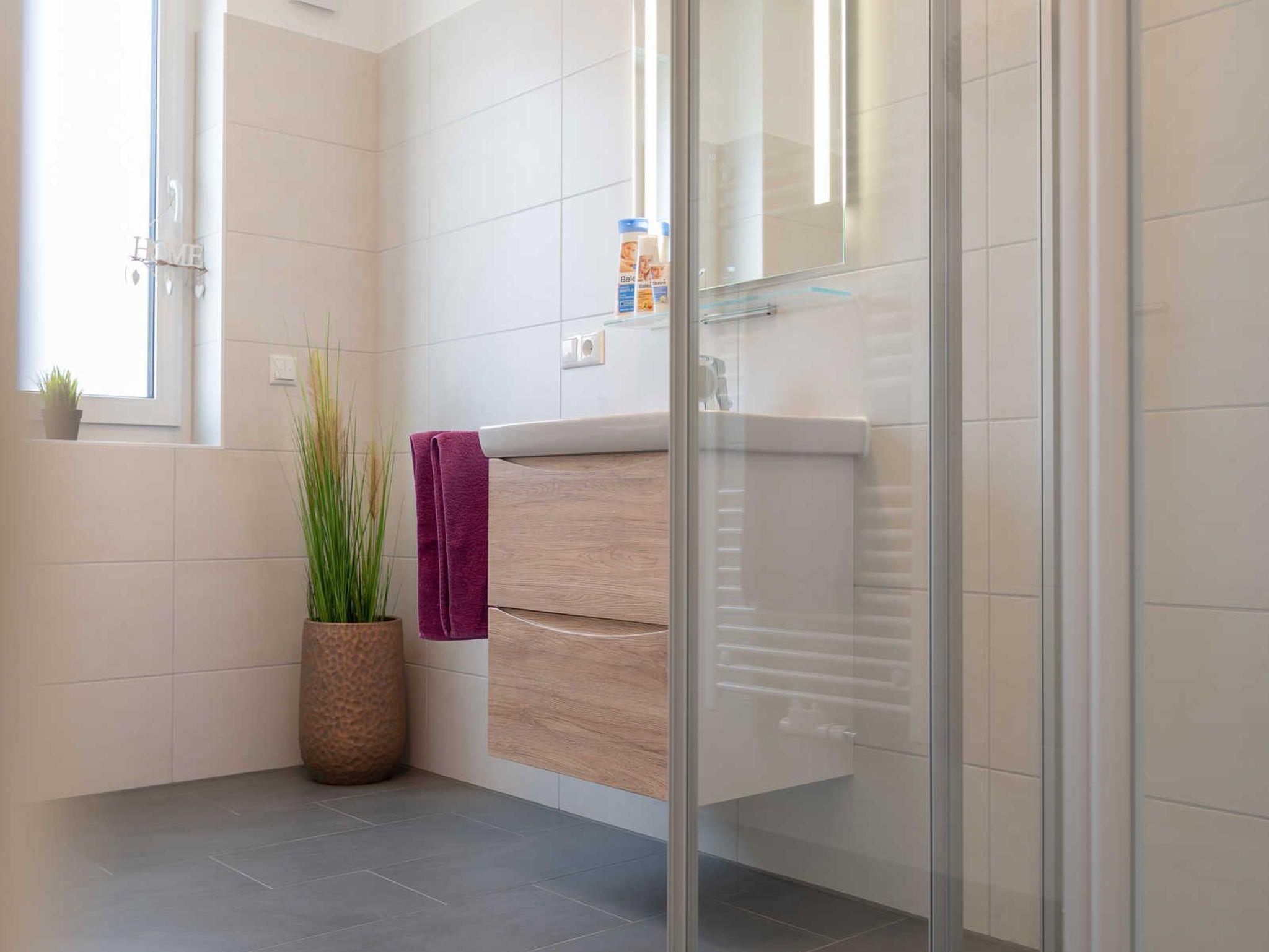 Im integrierten Abstellraum der Freienwohnung befindet sich eine Waschmaschine, um längere Aufenthalte angenehm zu gestalten. Wäscheset, Kinderreisebett und Kinderhochstuhl können kostenpflichtig zugebucht werden.