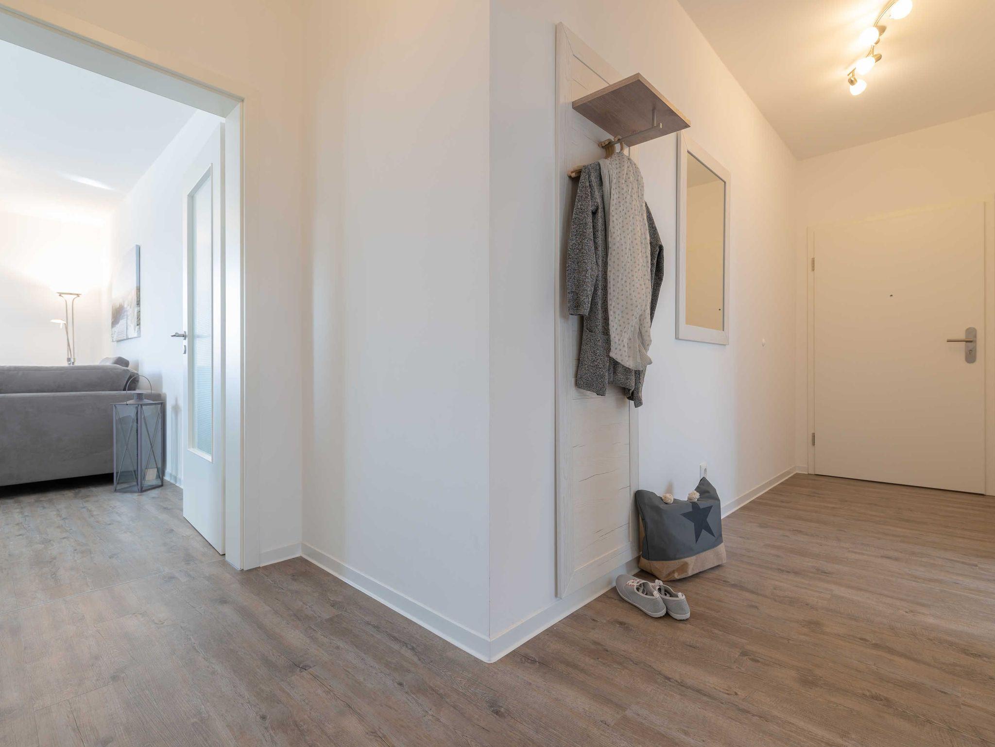 Das Apartment ist im maritimen Stil eingerichtet und verfügt über einen Wohn-/Essbereich mit integrierter Küchenzeile inkl. Kühlschrank, Ceranfeld, Backofen, Mikrowelle, Geschirrspüler und Dunstabzugshaube. Das helle Bad besticht mit ebenerdiger Dusche und eigenem Fenster. In den Schlafräumen sorgen ein Doppelbett (180 x 200 cm) und zwei Einzelbetten (je 100 x 200 cm) für süße Träume. Im Wohnbereich und im Schlafraum mit den getrennten Betten sind Flachbildfernseher installiert. Vom Wohnzimmer gelangen Sie auf den herrlichen Balkon mit Süd-West-Ausrichtung und gemütlicher Sitzaustattung. Ein kostenfreier KFZ-Stellplatz und ein eigener Fahrradabstellraum befinden sich auf dem Grundstück. Eine Fahrradvermietung und ein kleiner Kaufmannsladen sind vor Ort fußläufig zu erreichen. Der Strand von Börgerende ist nur 5 Gehminuten entfernt.