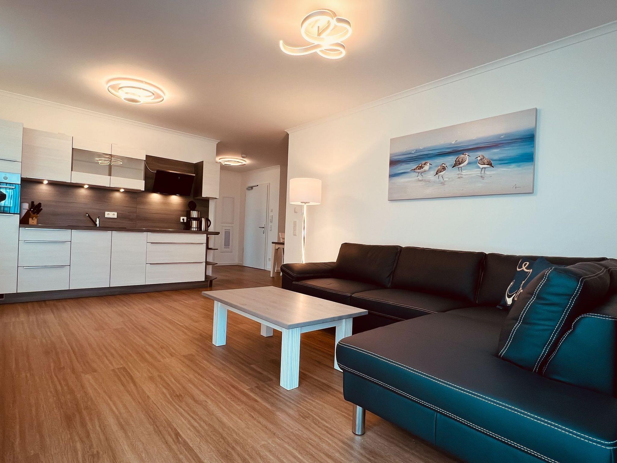 Die geschmackvoll eingerichtete 3-Zimmer-Ferienwohnung verfügt über ein großzügiges Schlafzimmer, einen weiteren separaten Schlafraum, ein Wohn- und Esszimmer mit offener Einbauküche sowie ein Bad mit ebenerdiger Dusche. Eine geräumige Terrasse mit Strandkorb und ein zugehöriger kostenfreier PKW-Außenstellplatz inkl. einer abschließbaren Fahrradbox für max. 3 Räder gehören ebenfalls zur Unterkunft. Die Maße der Box sind Tiefe 76 cm, Breite 178 cm und Höhe 110 cm. (Achtung, nicht für alle Fahrradgrößen geeignet!) Ein Vorhängeschloss hierfür wird nicht gestellt und muss bei Bedarf selbst mitgebracht werden.