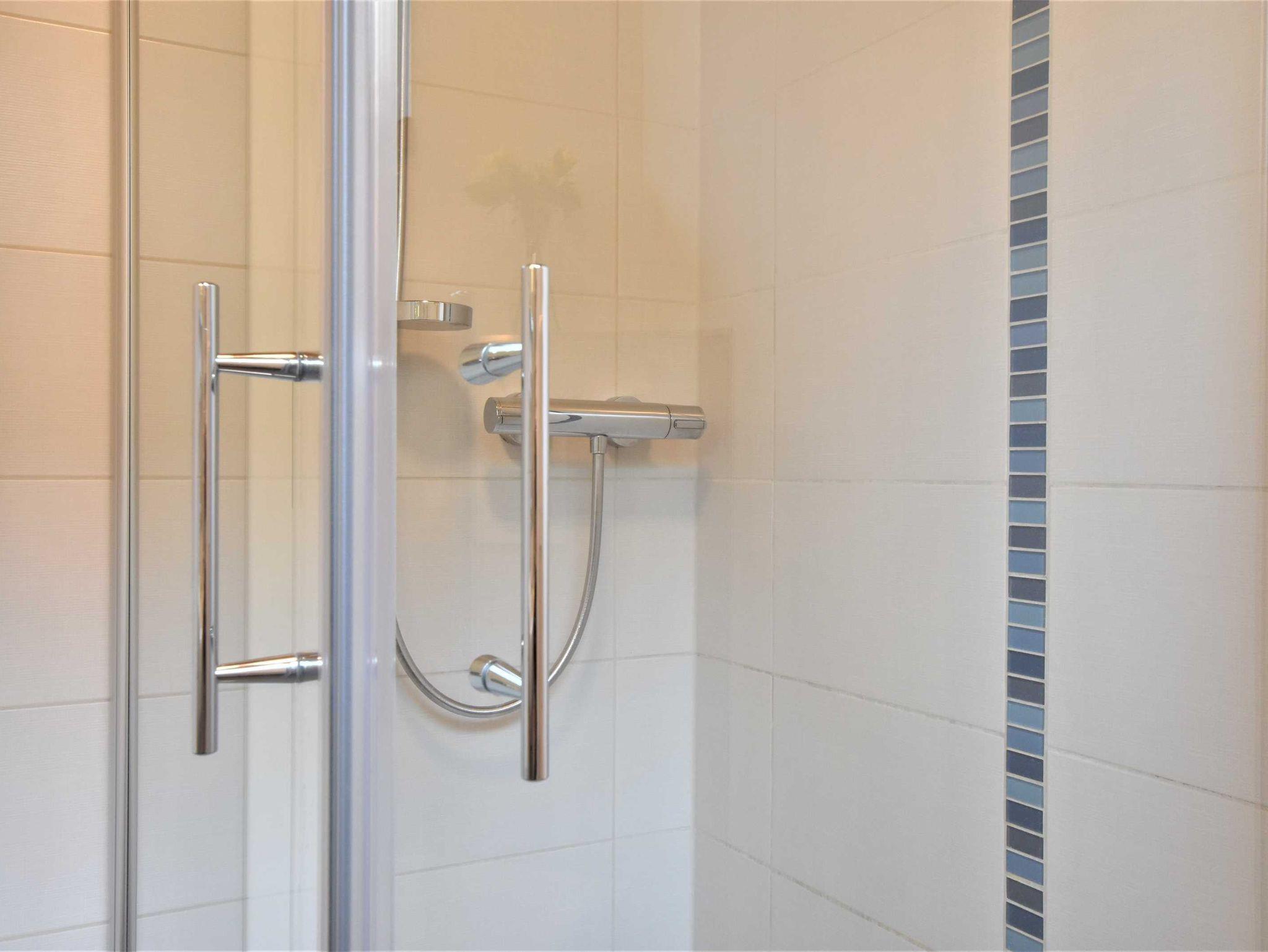 Im oberen Bereich der Ferienwohnung: In das Obergeschoss gelangt man über einen hellen und freundlichen Treppenbereich. Hier befinden sich zwei separate Schlafzimmer. Beide sind mit einem Doppelbett (1,80 x 2m) und ausreichend Stauraum im Kleiderschrank ausgestattet. Ein Schlafzimmer verfügt außerdem über ein zusätzliches TV- Gerät.