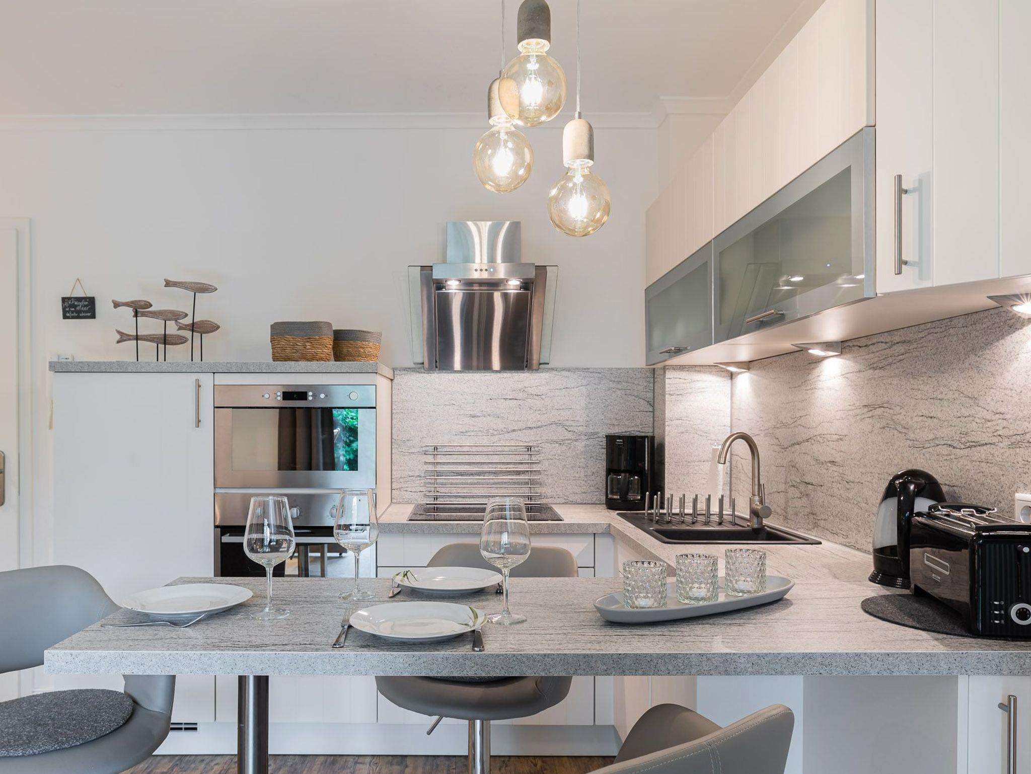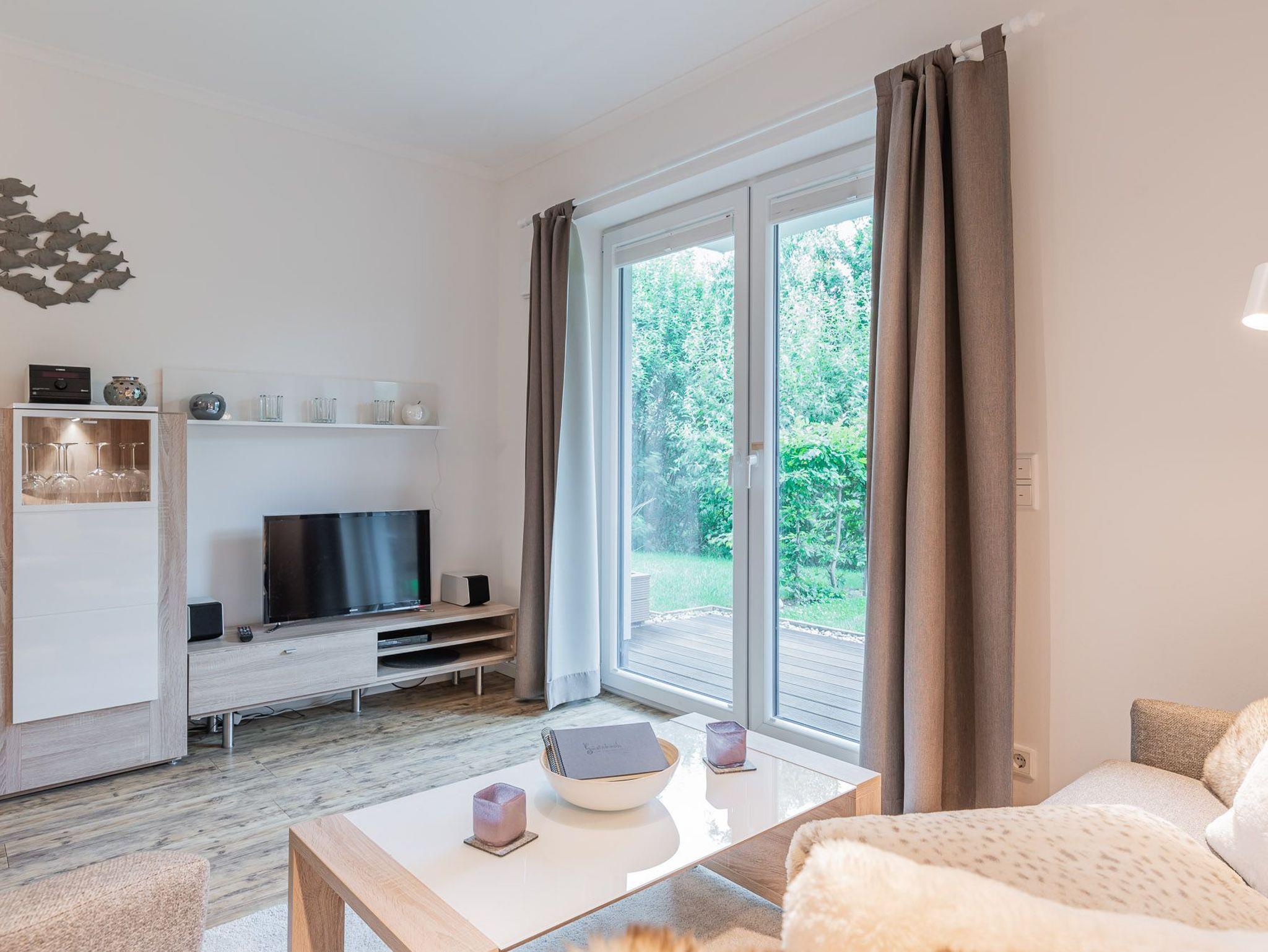 Diese moderne und gemütliche 2-Zimmerwohnung befindet sich in der Residenz Seestern. Im Wohnraum finden Sie eine hochwertige Couchgarnitur mit Schlaffunktion (1,40 x 2,00m) zum Relaxen. Zur Unterhaltung stehen Ihnen ein großer Flachbild TV, ein DVD-Player, eine Yamaha HiFi Anlage mit Bluetooth, USB Anschluss und CD zur Verfügung. Die voll ausgestattete Küche mit Induktionsherd, Geschirrspüler, Mikrowelle, Caffissimo - Tchibo Kaffeemaschine und weiteren Annehmlichkeiten wird Sie begeistern. Im modern eingerichtetem Schlafzimmer finden Sie ein gemütliches Doppelbett (1,80 x 2,00m) mit einem geräumigen Schiebeschrank. Sowohl das Wohnzimmer als auch das Schlafzimmer haben einen direkten Zugang zur Terrasse . Das großzügige Bad mit Fußbodenheizung bietet eine bodengleiche Dusche und einen großen Waschtisch. Für Koffer und Taschen finden Sie eine separate Abstellkammer.