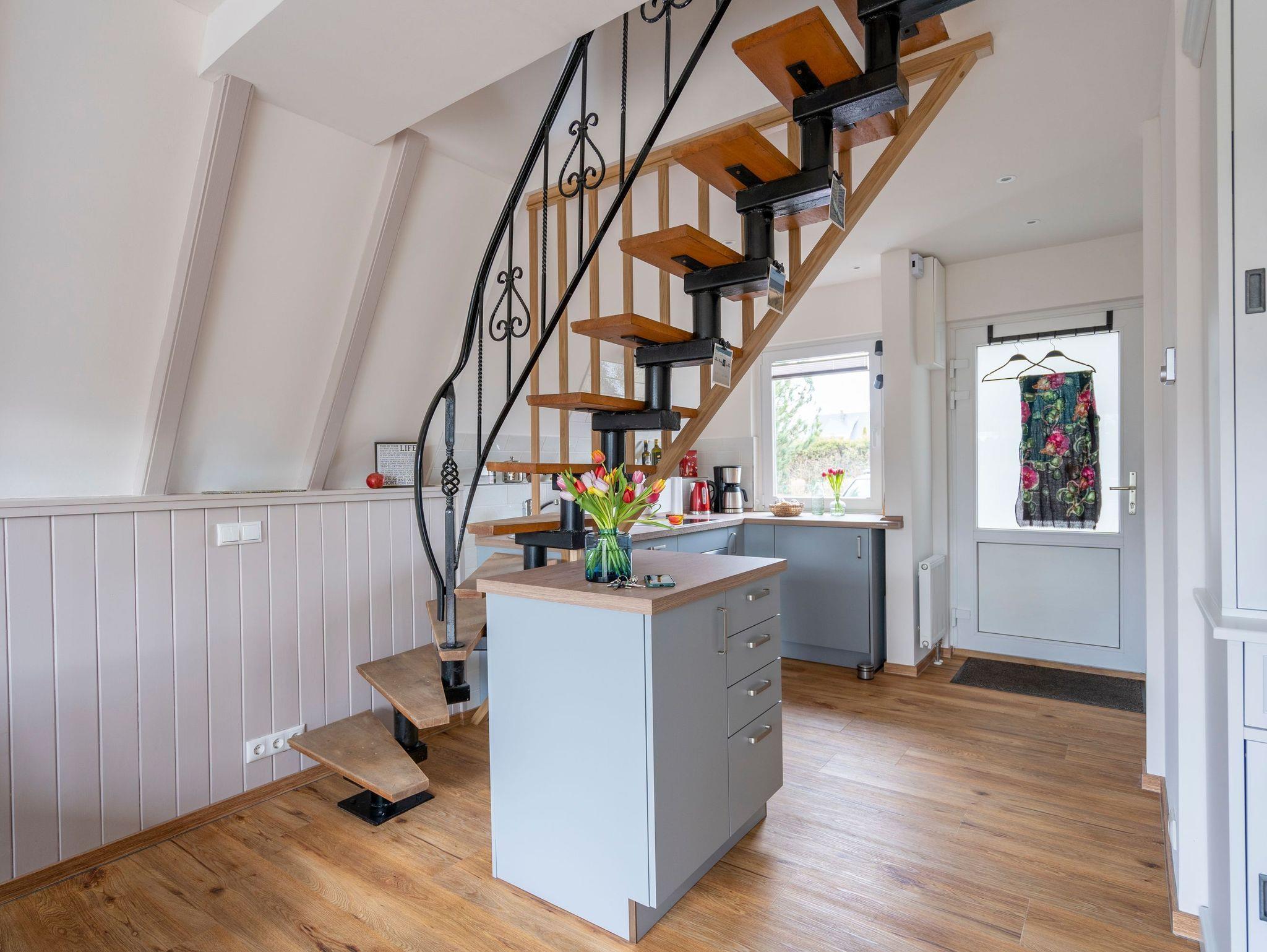 Schlechtes Wetter in Sicht? Auch kein Problem. Entspannen Sie gemütlich auf dem blauen Ecksofa mit Blick in den Garten und genießen Sie den Tag. Der lichtdurchflutete und offene Wohn- [&] Küchenbereich mit komfortablem Essplatz laden förmlich zum Ausruhen ein. Eine kleine Auswahl an Büchern, Spielen, ein Flachbildfernseher sowie ein Radio helfen, die Zeit bis zu Ihrem nächsten Strandgang, Ausflug oder Ihrer nächsten Fahrradtour zu überbrücken.