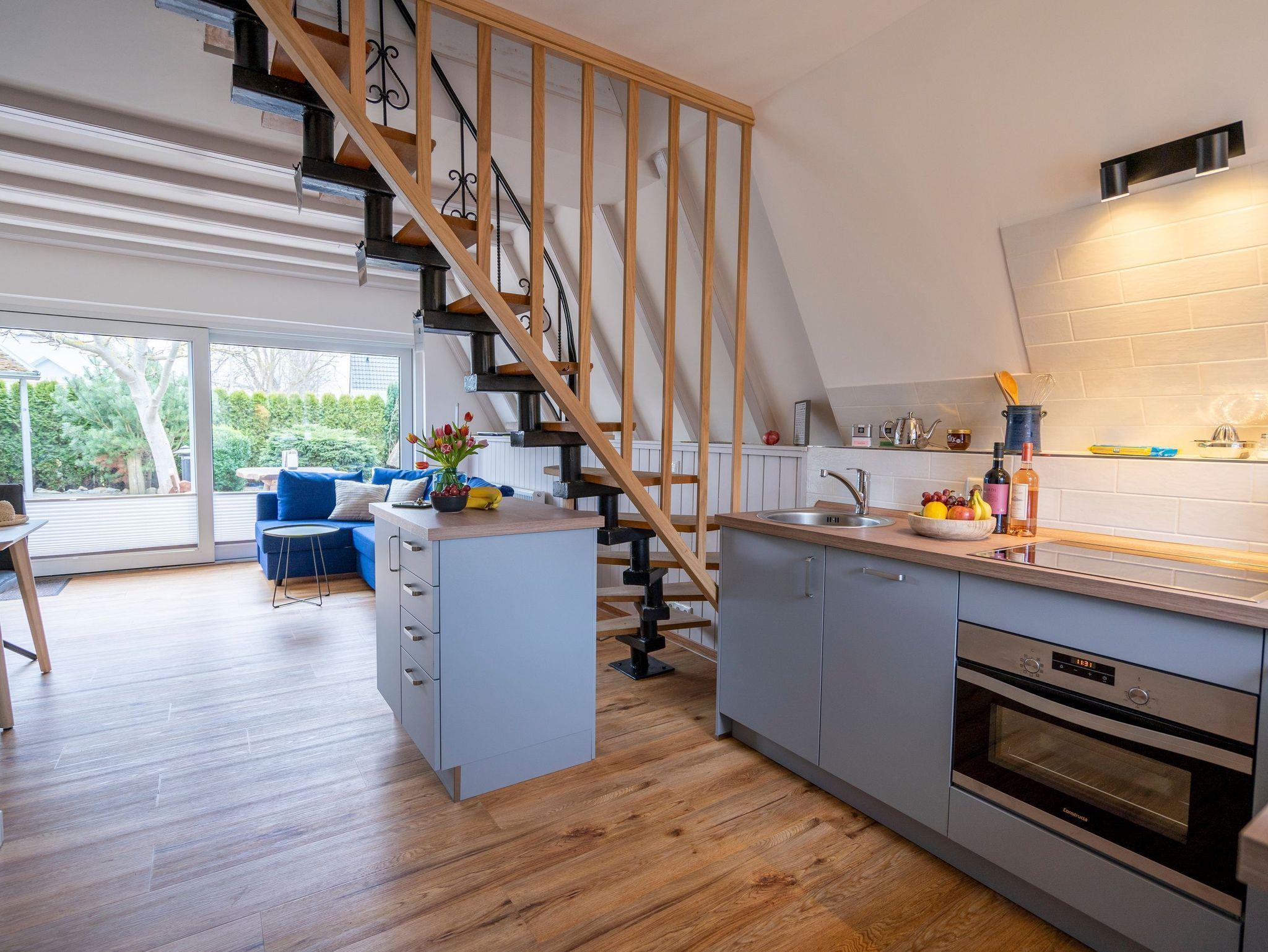 Auch die neue Küche bietet Ihnen alles, worauf man auch im Urlaub nicht verzichten möchte. Ein Kühlschrank mit einem kleinen Gefrierfach für Ihren Eis- oder Pizzavorrat, ein Induktionskochfeld, ein Multifunktionsbackofen, ein Geschirrspüler, ein Wasserkocher, eine Kaffeemaschine und ein Toaster stehen für Sie breit.