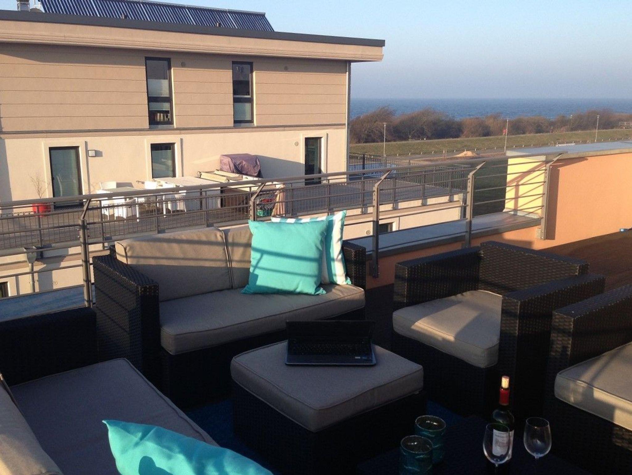 Strandnahe, exklusive, sonnige Zwei-Raum Penthouse Wohnung mit umlaufendem Balkon und Meerblick.