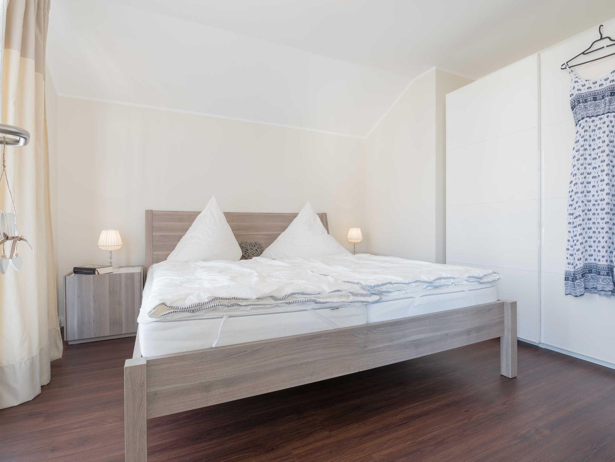 1 Schlafzimmer mit einem Doppelbett (2x einzelne Matratzen 90x200) und Kleiderschrank