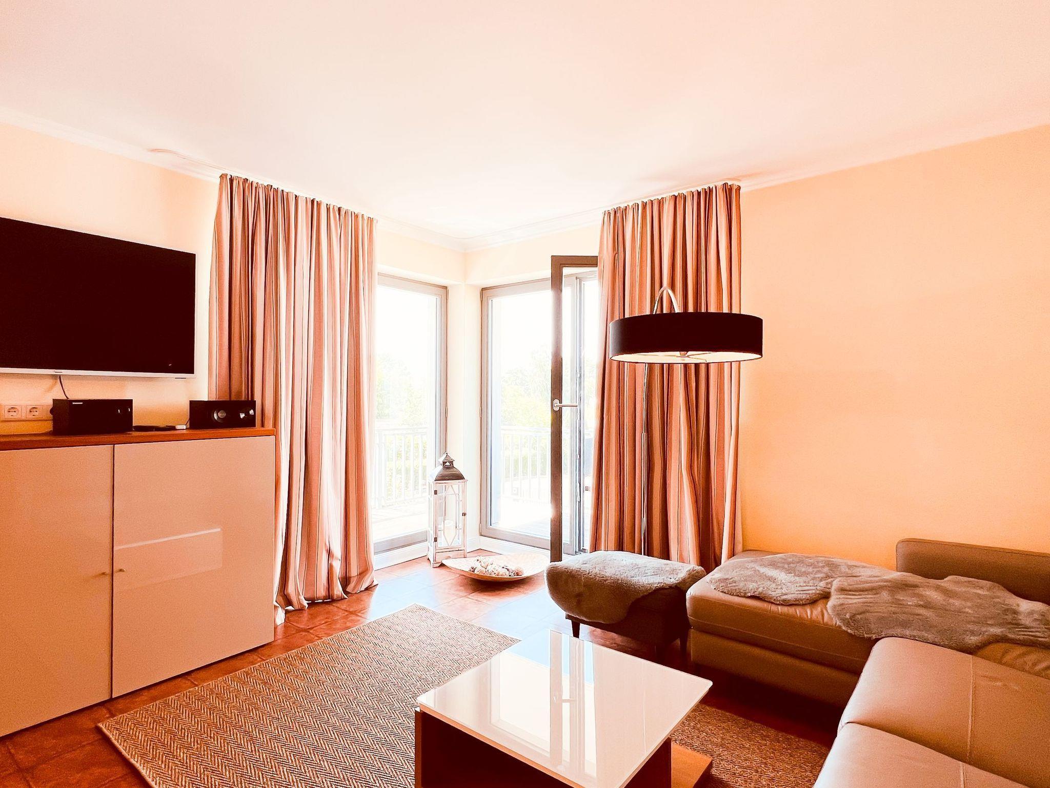 Der kombinierte Wohn-/ Essbereich besticht mit einer gemütlichen Leder-Schlafcouch und einem stimmungsvollen Gas- Kamin. Ein großzügiger Esstisch mit Stühlen lädt zu gemeinsamen Mahlzeiten und Spieleabenden ein. Für die mediale Unterhaltung stehen ein TV- Gerät und ein Radio für Sie bereit. In der offenen Einbauküche haben Sie alles, was zum Zubereiten von vollwertigen Mahlzeiten notwendig ist. Einen Geschirrspüler, Kühlschrank, inklusive Gefrierfach, Kaffeemaschine, Wasserkocher, Toaster, Mikrowelle und diverse Kochgeräte. Mit einem großen Doppelbett (getrennte Matratzen) und einem hohen Kleiderschrank empfängt Sie einer der Schlafräume. Das zweite Schlafzimmer ist mit zwei Einzelbetten (als Doppelbett hergerichtet/ getrennte Matratzen) und ebenfalls einem hohen Kleiderschrank eingerichtet. Das Badezimmer besticht mit einer ebenerdigen Dusche. Angrenzend befindet sich noch ein separates Gäste-WC. Auf den charmanten Eckbalkon (Süd-West-Ausrichtung) gelangen Sie durch den Wohnbereich. Von hier aus können Sie einen Blick auf die blaue Ostsee werfen. In allen Räumen sorgt eine Fußbodenheizung für gemütliche Wärme. In der Wohnung sorgt eine zusätzliche Abstellgelegenheit für reichlich Stauraum. Zur Wohnung gehören zudem ein kostenfreier Tiefgaragenstellplatz und eine Abstellmöglichkeit für Fahrräder. Bitte beachten Sie die Durchfahrtshöhe von max. 1,90 m der Tiefgarage. Mit einem Personenaufzug gelangen Sie von der Tiefgarage aus direkt zu Ihrer Wohnung. Im Erdgeschoss der Wohnung befindet sich ein gekennzeichneter Abstellbereich für Kinderwagen. Hier noch einige Hinweise: Es handelt sich um eine Nichtraucherwohnung. Haustiere sind nicht gestattet. Wäschesets, Kinderreisebett und Kinderhochstuhl können kostenpflichtig zugebucht werden. Eine Waschmaschine und ein Trockner stehen im separaten Hauswirtschaftsraum im Untergeschoss der Villa zu Ihrer Verfügung (gegen Gebühr / 1,00 € Münzen). Sichern Sie sich einen der begehrten Strandkörbe nur ein paar Meter entfernt von den rauschenden Wellen der Ostsee (Anfang Mai - Ende August) und buchen Sie jetzt zu besonderen Konditionen (12,00 € pro Tag oder 75,00 € pro Woche.)