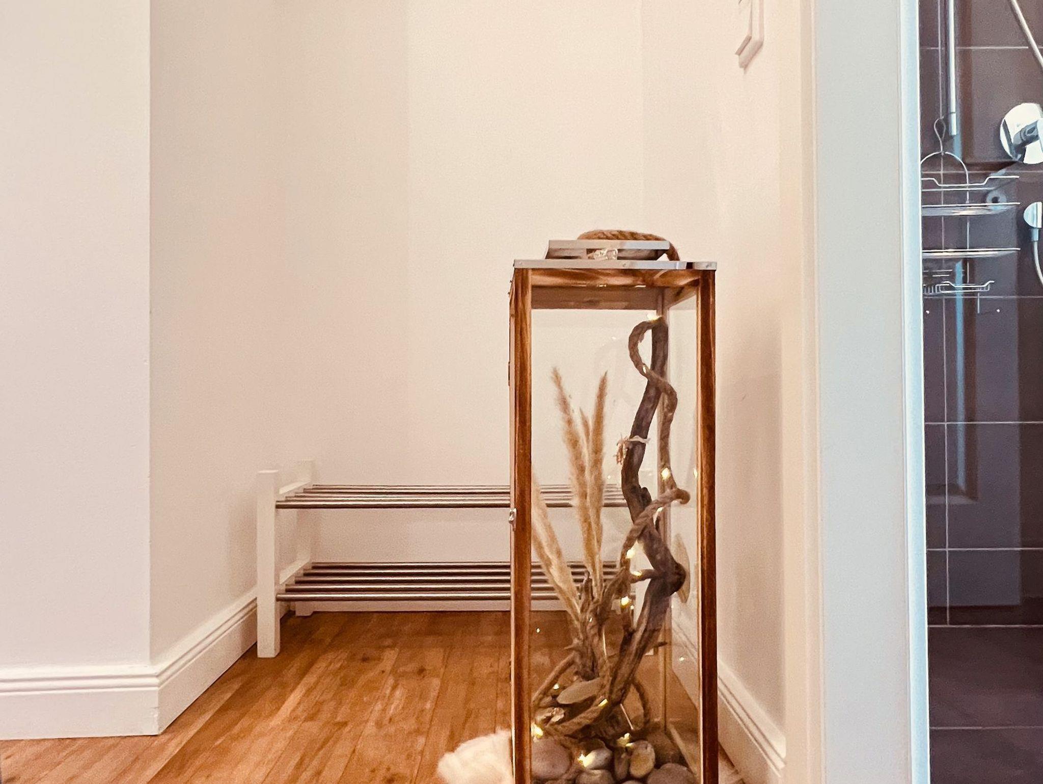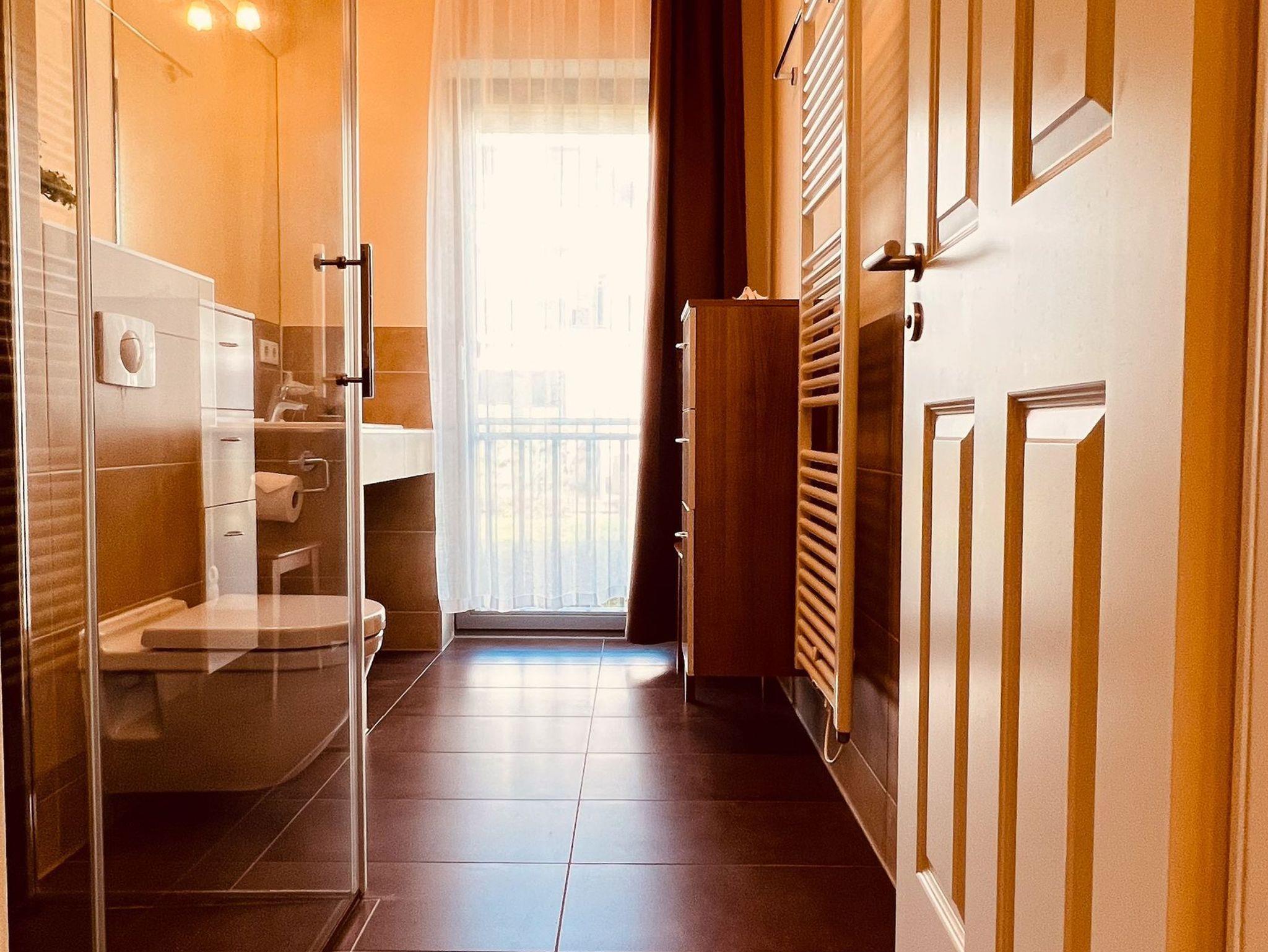 Diese für zwei Personen modern eingerichtete Wohnung liegt nur 50 Meter vom Strand entfernt. Herzstück des Wohn-/ Esszimmers ist ein stilvoller Gas-Kamin, der an kalten Tagen für Gemütlichkeit sorgt. Eine Sitzcouch, ein Esstisch mit Stühlen, ein -TV- Gerät mit DVD-Player und eine Stereoanlage sorgen für leichte Unterhaltung. Für weitere Vergnügungen stehen eine Bücher- und Spielesammlung zur Verfügung. Die offene Einbauküche verfügt über einen Geschirrspüler, einen Kühlschrank mit Gefrierfach, eine Kaffeemaschine, einen Wasserkocher, einen Toaster und eine Mikrowelle. Im Schlafzimmer erwartet Sie ein Doppelbett und ein Kleiderschrank. Das schöne Duschbad besticht mit bodengleicher Dusche, Handtuchtrockner und Föhn. Auf dem Balkon finden Sie Balkonmöbeln und einen Strandkorb. Dieser wird an warmen Sommertagen zu Ihrem Lieblingsort. Von hier aus haben Sie einen freien Blick auf die Promenade. In allen Räumen der Ferienwohnung sorgt die Fußbodenheizung für angenehme Wärme. Zur Wohnung gehören zudem ein kostenfreier Tiefgaragenstellplatz und eine Abstellmöglichkeit für Fahrräder. Bitte beachten Sie die Durchfahrtshöhe von max. 1,90 m in die Tiefgarage. Mit einem Personenaufzug gelangen Sie von der Tiefgarage aus direkt zu Ihrer Wohnung. Im Erdgeschoss der Wohnung befindet sich ein gekennzeichneter Abstellbereich für Kinderwagen. Hier noch einige Hinweise: Ein Wäscheset kann pro Person kostenpflichtig zugebucht werden. Eine Waschmaschine und ein Trockner stehen im separaten Hauswirtschaftsraum im Untergeschoss der Villa zu Ihrer Verfügung (gegen Gebühr / 1,00 € Münzen). Wäscheset, Kinderreisebett und Kinderhochstuhl können kostenpflichtig mitgebucht werden. Es handelt sich um eine Nichtraucherwohnung. Das kostenfreie WLAN in der Unterkunft ist ausschließlich für die Verwendung von Social Media und den Austausch von Bildern mit Familie und Freunden gedacht. Die Nutzung zum Streamen von Filmen ist nicht vorgesehen. Es sind keine Haustiere erlaubt. Sichern Sie sich einen der begehrten Strandkörbe nur ein paar Meter entfernt von den rauschenden Wellen der Ostsee (Anfang Mai - Ende August) und buchen Sie jetzt zu besonderen Konditionen (12,00 € pro Tag oder 75,00 € pro Woche.)