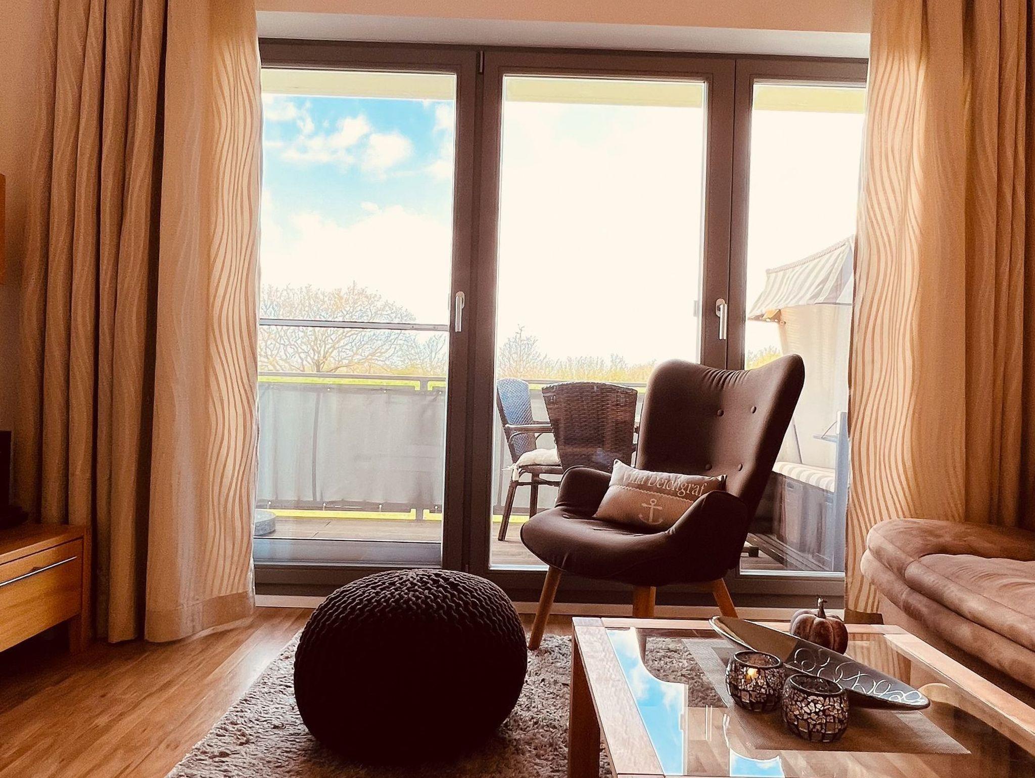 Strandnahe 2-Raumwohnung für max. 2 Erwachsene mit Strandkorb im Hochparterre EG (Ostausrichtung).