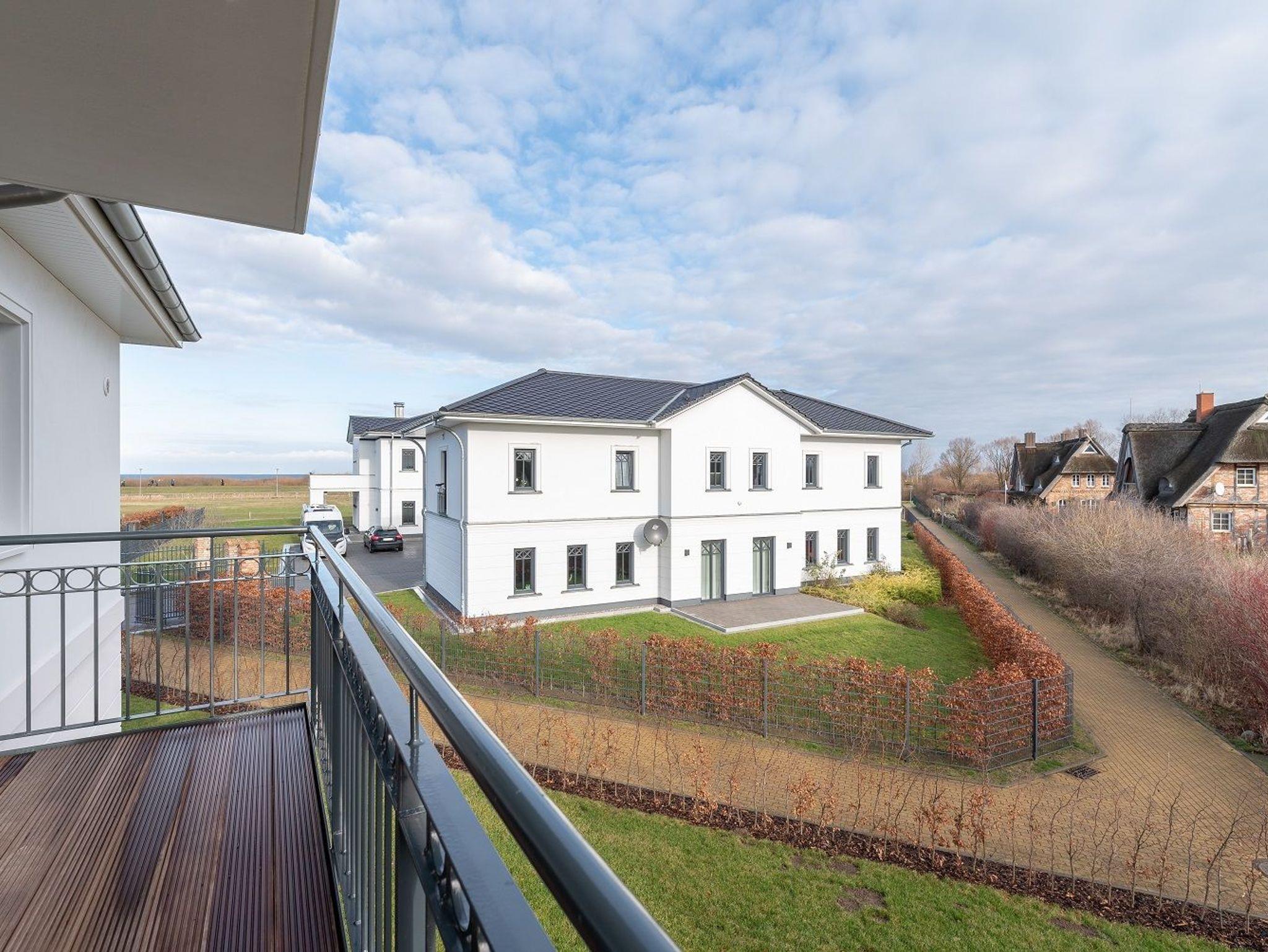 Genießen Sie die Morgensonne bis zum Mittag auf dem Balkon in Ost-Süd-Ost-Ausrichtung. Hier kann der Tag mit einem gemütlichen Frühstück beginnen. Ein Sonnenschirm sowie ein Tisch mit vier Stühlen und der Blick auf umliegende reetgedeckte Häuser sowie ein Teilmeerblick laden hierzu ein.