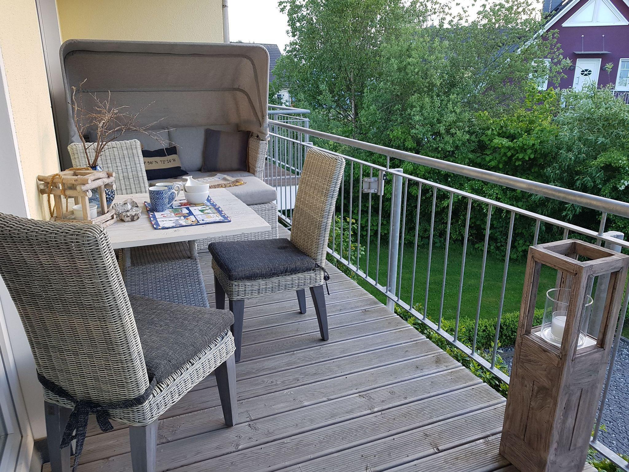 Sonnige 2-Zimmer-Wohnung im ersten Obergeschoss, weniger als 300 m vom schönen Ostseestrand entfernt - Balkon mit eingeschränktem Meerblick
